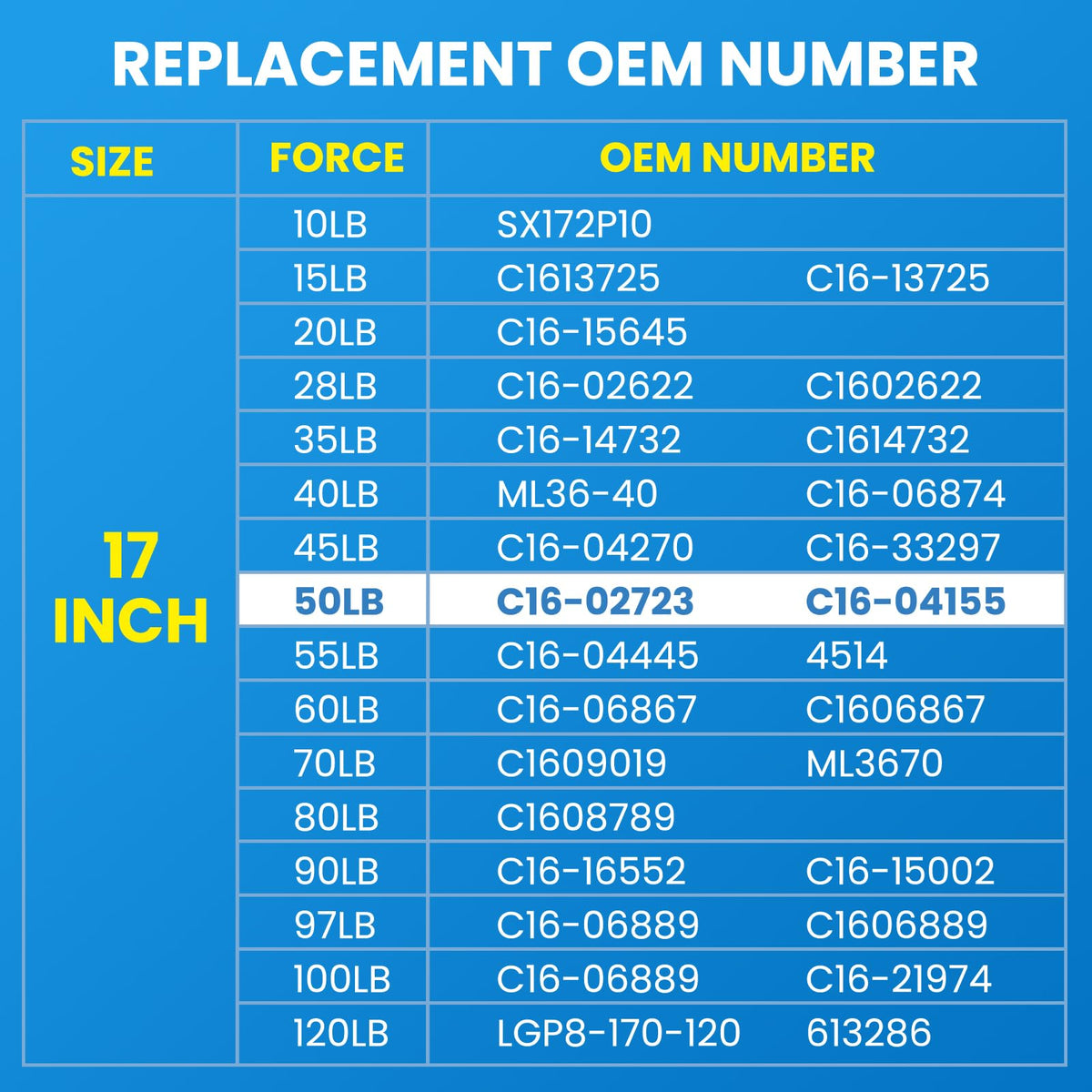 C1602723 17 Inch 50 Lb Gas Strut Props Lift Supports 50 Lbs/222 N Gas Spring Shocks (17'' Extended) For Are Camper Shell Truck T