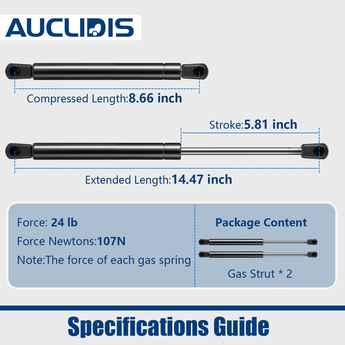 Q: How many gas struts are included in the package?A: The package includes a set of 2 gas struts, allowing you to replace both struts for balanced support.