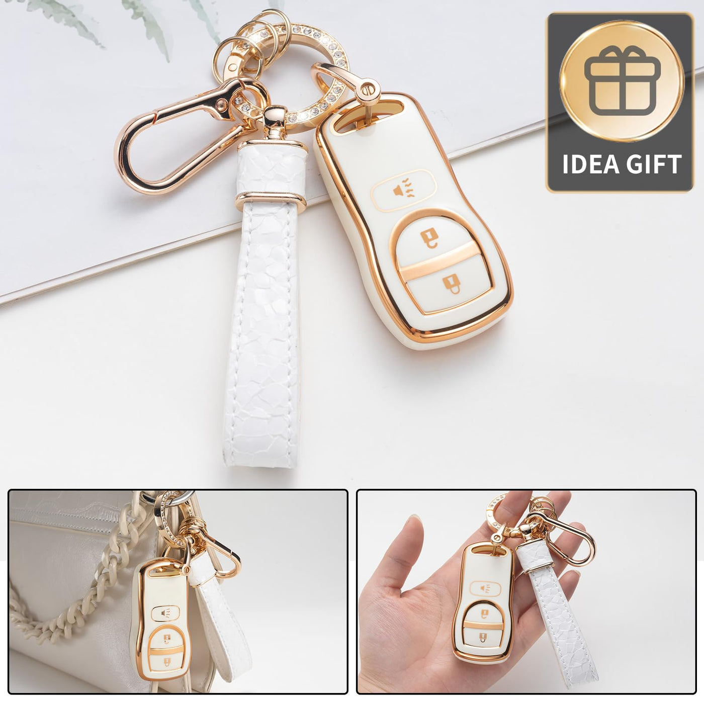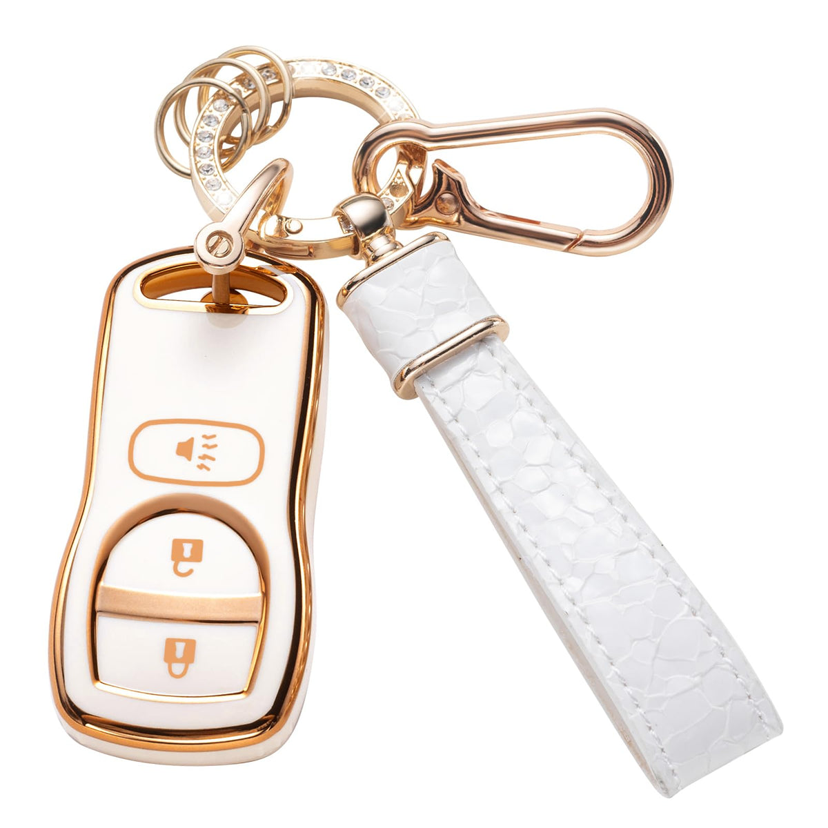 Cacarlike For Nissan Key Fob Cover With Nissan Keychain, Car Key Fob Case Compatible With Nissan Altima Maxima 350Z Armada Quest