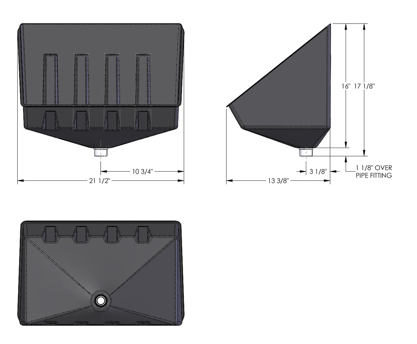 Q: What are the dimensions of the Camco drain pan?A: The Camco 11470 drain pan measures 21.7 inches in length and 13.5 inches in width, making it suitable for a variety of tankless water heaters.