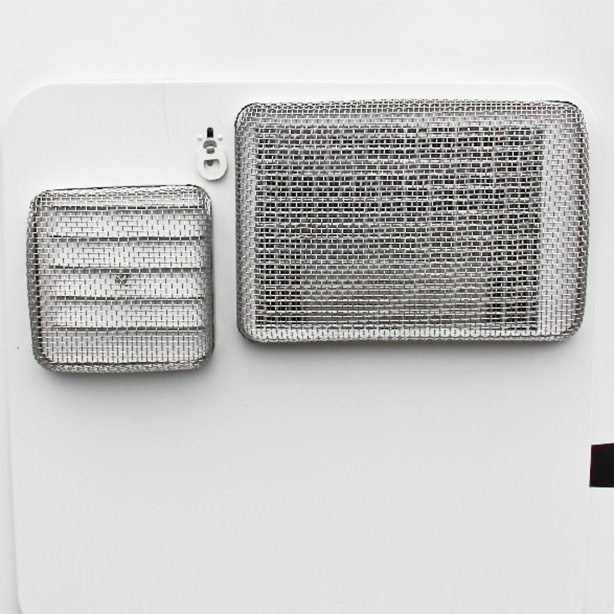 Q: How is the Camco 42145 screen constructed?A: The mesh cover of the Camco 42145 screen is made of heavy-duty stainless steel, providing durability and long-lasting protection against insects.