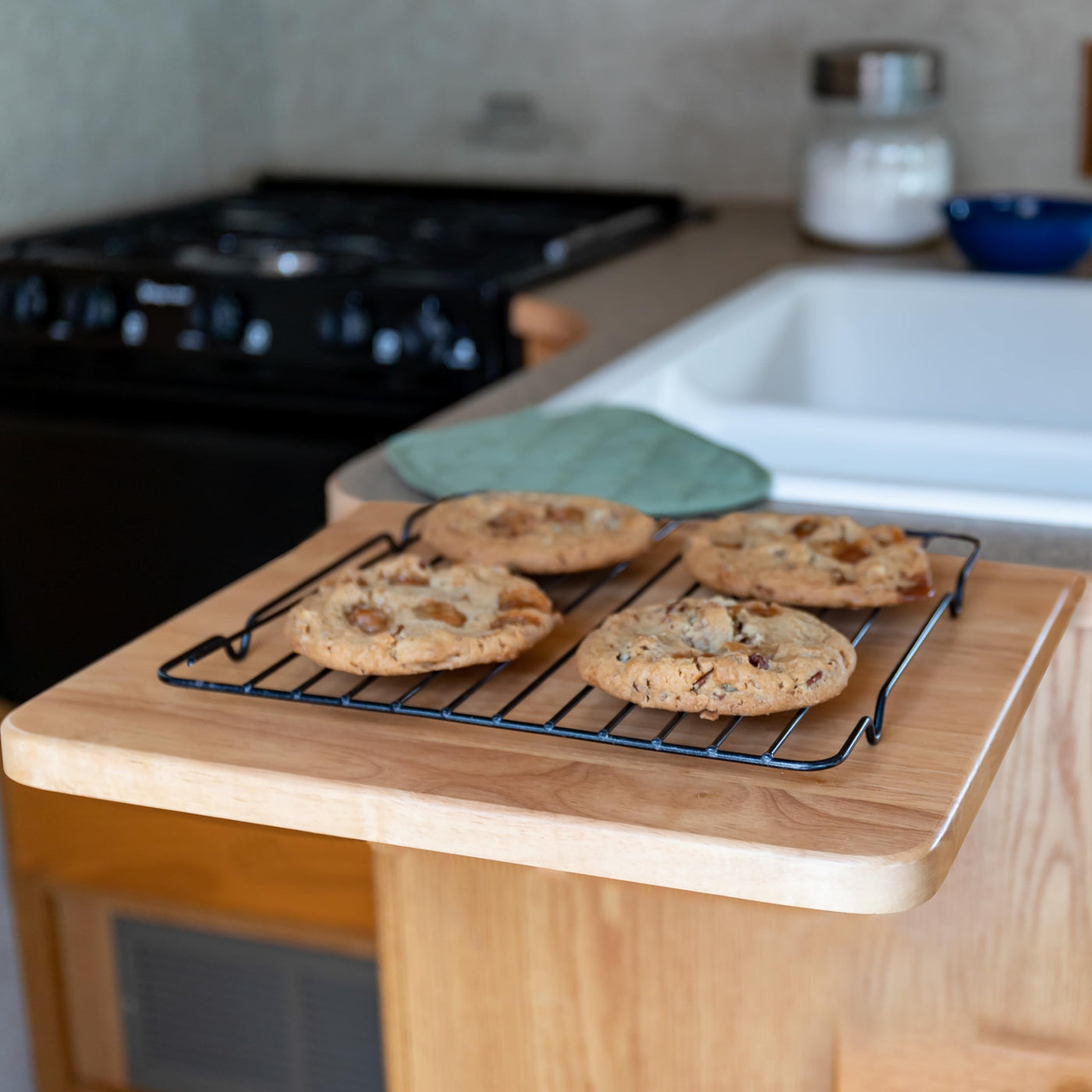 Add An Extra 12'' To Your Countertop. This Extension Bracket To Your Current Brass Countertop With A Piano Hinge. Handles Easily And Is Secured By A Drop Metal Table Sheet Stand, Foldable When Not In Use. Super-Hard, Non-Toxic Gloss Finish In Natural Oak; Mounting Hardware Included; Measures 12 X 14 X 3/4''; Made In Usa. Order Online Today. Details Of Camco Roble Countertop Extension