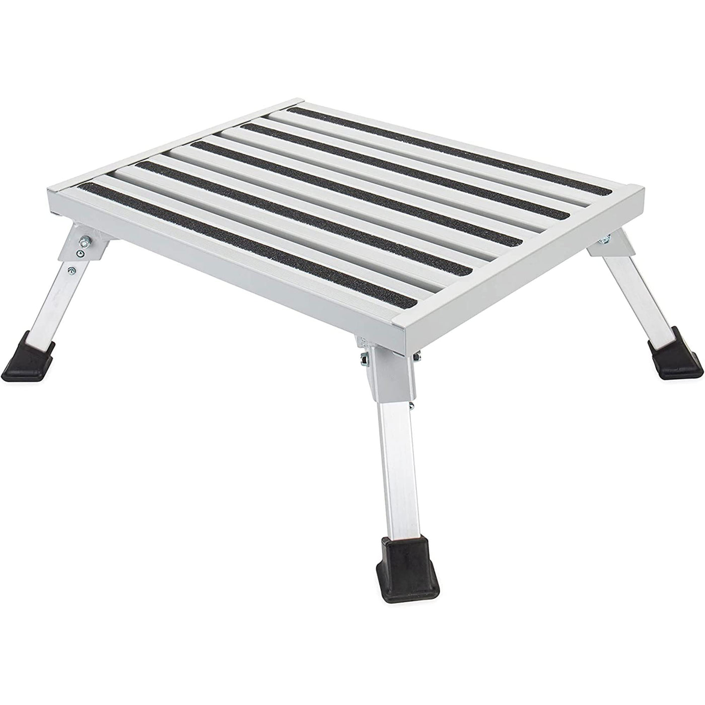 Camco 43677 Fixed Height 19 X 14.5 Aluminum Platform Foldable Step Stool With Non-Slip Secure Rubber Feet And 1000 Pound Capacity