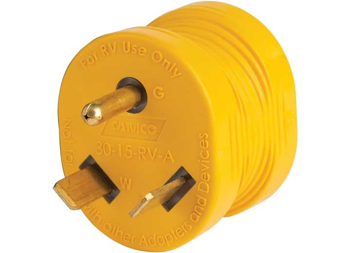 Q: What is the purpose of the Camco 55232 30 Amp Male/15 Amp Female Adapter?A: The Camco 55232 adapter allows you to connect a 30 Amp power source to a 15 Amp device, making it ideal for RVs and other applications where you need to use a lower amperage device with a higher amperage outlet.