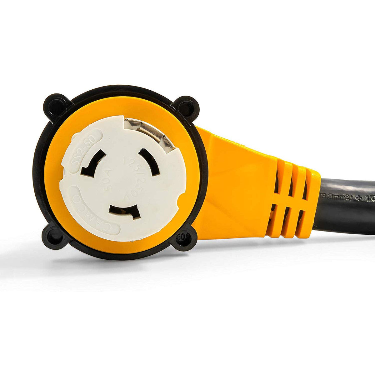 Camco 55574 Powergrip 25 Foot Long 50 Amp Rv Power Cord Cable With 50 Amp Male Plug And 50 Amp Female 90 Degree Locking Adapter