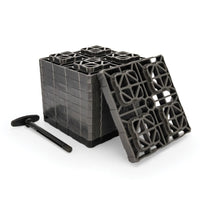 The Camco FasTen XL Leveling Blocks allow you to stack the interlocking blocks to the desired height for safe and easy leveling. The new, larger size has an increased weight capacity of blocks individually and in a stack, and also provides more surface area for leveling. Each block adds a full inch to stack height. Camcos FasTen XL Leveling Blocks can be used with single wheels, dual wheels, hydraulic jacks, tongue jacks, stabilizer jacks, 5th wheel jacks and tandem axles. The convenient carrying handle secures blocks together for storage and easily pulls up for carrying, or pushes down for more compact storage. Individual block measures: 10.5 x 10.5 x 1.5 . Stack height should not exceed 4.5.