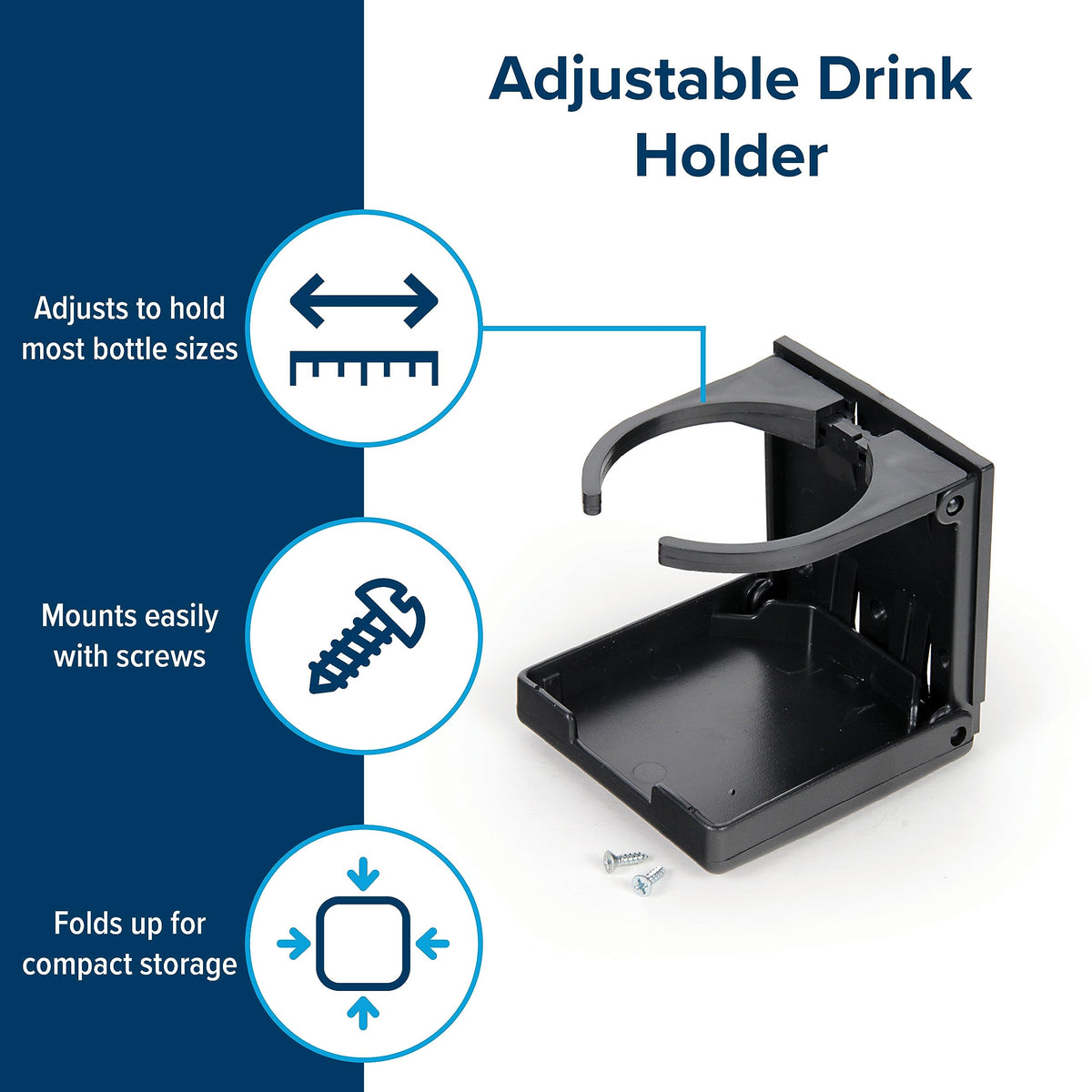 Camco Camper/Rv Drink Holder - Features Adjustable Space-Saving Design & Holds Almost Any Size Mug, Cup, Bottle Or Can - Extra Cup Holder For Cars, Trucks, Rvs, Vans, Boats, And More - Black (44044)