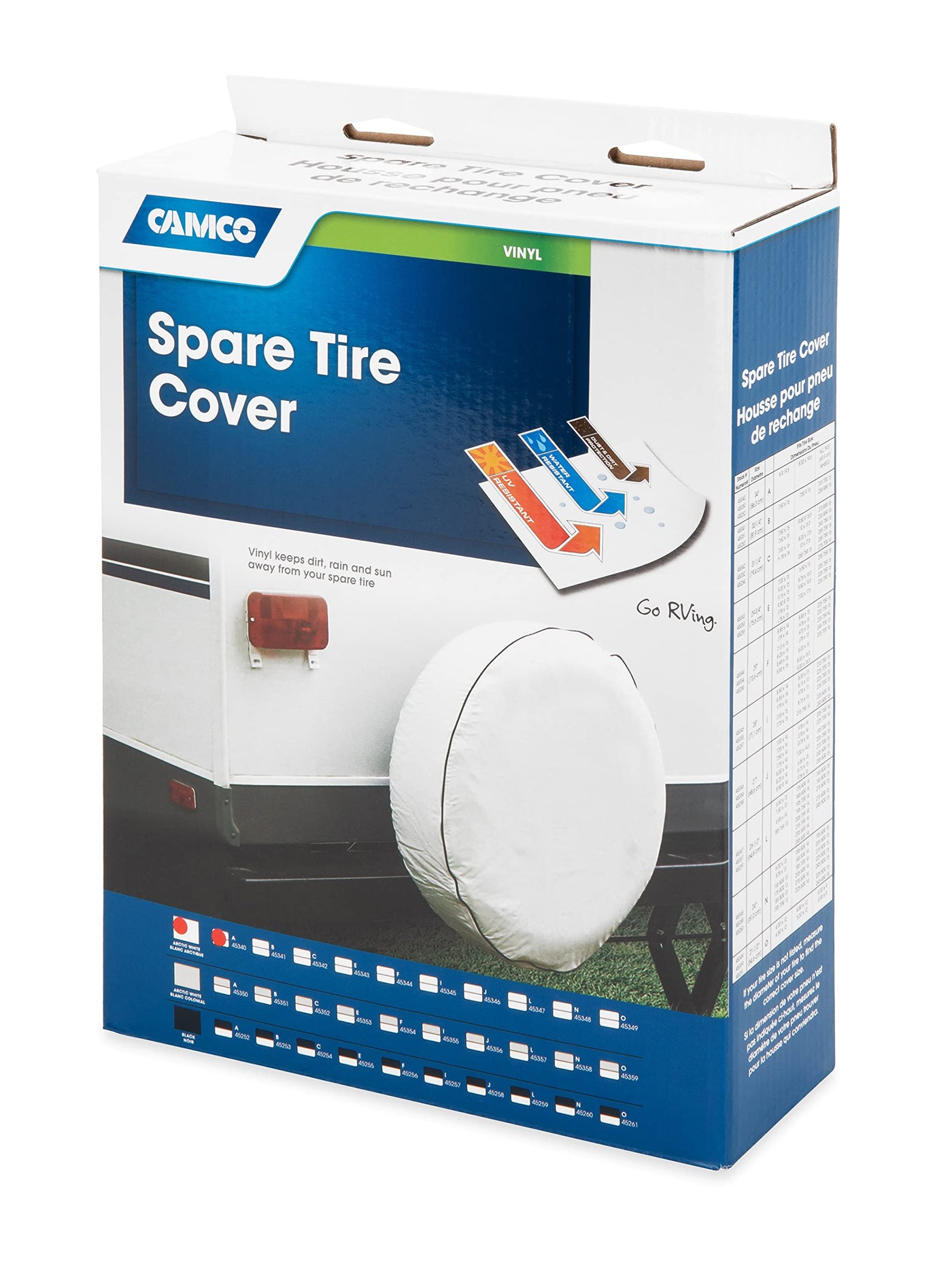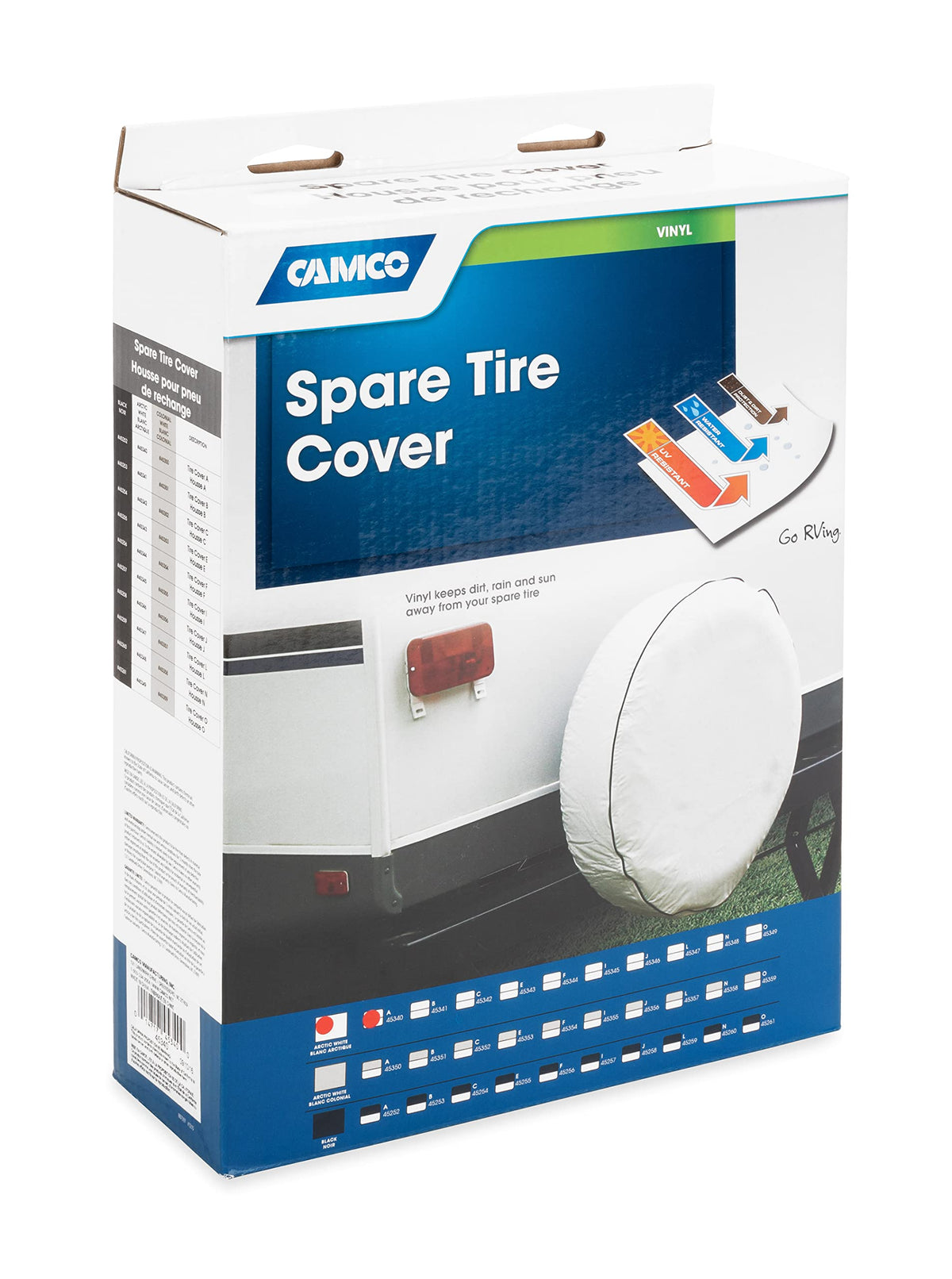 Camco Camper/Rv Spare Tire Cover | Features Arctic White Vinyl & Heavy Duty Nylon Thread For Weatherproof Seams | Fits 34-Inch D