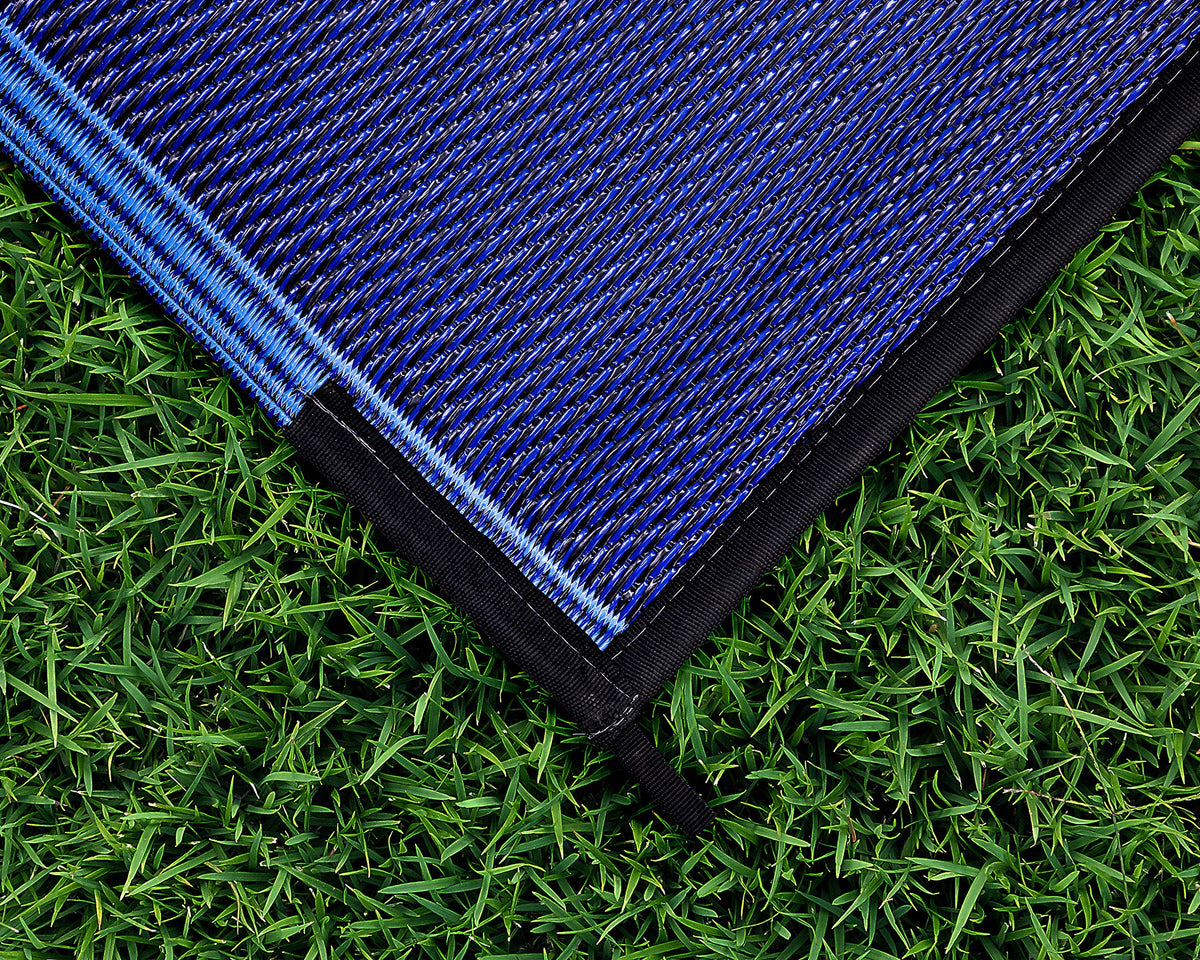 Q: What is the size of the Camco Large Reversible Outdoor Patio Mat?A: The Camco Large Reversible Outdoor Patio Mat measures 9 feet by 12 feet, making it an ideal size for various outdoor activities such as picnics, cookouts, and camping.