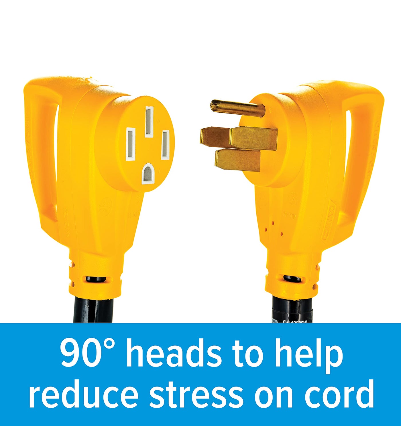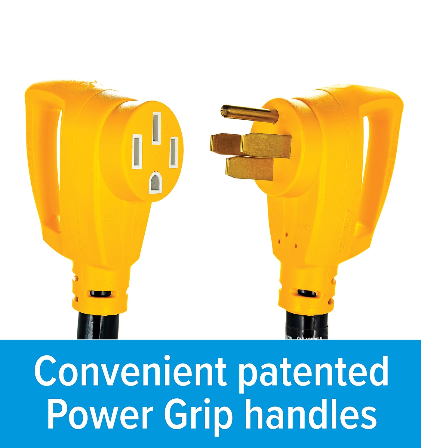 Camco Power Grip 50-Ft 50 Amp Rv Extension Cord - Rated For 125/250 V/12,500 W - Features Copper 6/3 + 8/1-Gauge Wires For Super