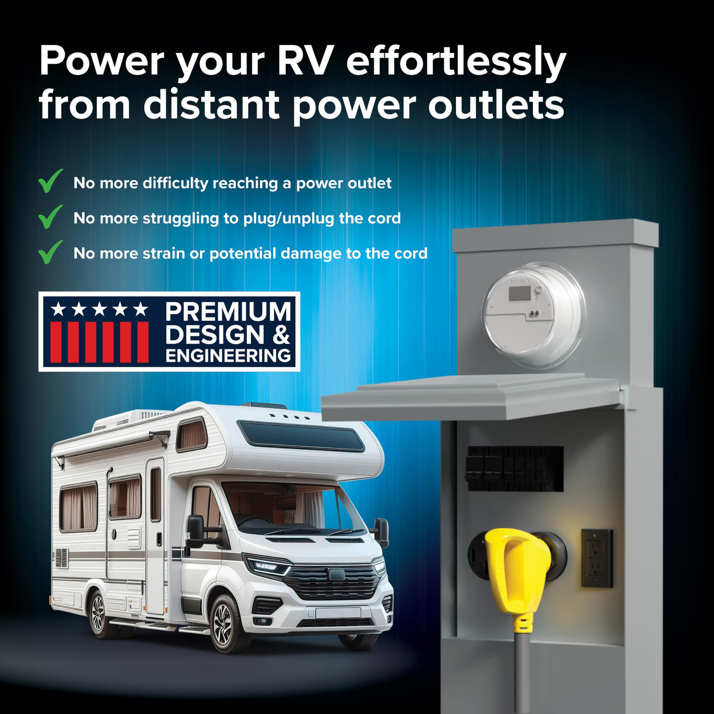 Experience ultimate versatility with Camco's 50' cord, designed to function as both a 30Amp RV Extension Cord and a Level 1 EV charger. This dual-purpose outdoor power cord ensures reliable power delivery for your travel trailer or electric vehicle, making it an essential tool for your outdoor adventures. Equipped with convenient handles, this EV charger extension cable is easy to plug and unplug. Its flame-retardant PVC sheath offers durability and protection against outdoor conditions and wear. The copper conductor wiring ensures optimal conductivity, while the adjustable cord organizer with carrying strap handle makes this RV power cord/EV charging extension cable both practical and portable. Travel confidently with Camco's 30-amp RV cord/EV charging cable, certified for use in the U.S. and Canada. Don't let distance limit your adventures- trust Power Grips 30-amp cord to stay powered on your journeys.