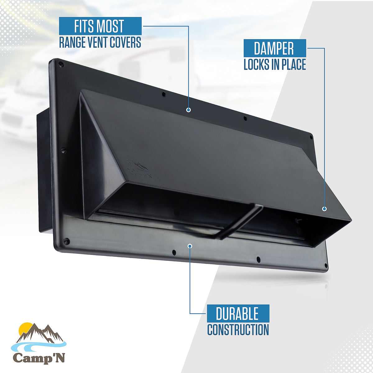 Discover the ultimate solution for maintaining the pristine condition of your RV kitchen with the Camp'n RV Range Hood Sidewall Exhaust Vent Cover. Our travel trailer vent covers are a game-changer for RV kitchens, ensuring that your Ventline vent cover performs at its best. Crafted from durable materials, the Camp'n RV Range Hood Sidewall Exhaust Vent Cover is built to withstand the rigors of travel. The Camp'n RV Range Hood Sidewall Exhaust Vent Cover is incredibly easy to replace, making it a hassle-free addition to your RV range hood parts collection. It's perfect for those who value both form and function in their camper stove cover and rv range hood vent cover. Key Features: 1. **Durable Construction**: Built to last, our vent cover can handle the wear and tear of life on the road, ensuring your RV stove vent cover remains effective over time. 2. **Sleek Design**: The modern, streamlined look of our vent cover enhances your RV's exterior, making it a must-have rv exhaust vent cover for any style-conscious camper. 3. **Easy Replacement**: Designed for convenience, this vent cover is simple to install, saving you time and effort for more important things-like planning your next adventure. The Camp'n RV Range Hood Sidewall Exhaust Vent Cover is compatible with a variety of vent types, including the Ventline range hood. This versatile product can also serve as an rv stove vent cover replacement, rv fan vent cover, and even a furnace vent cover for camper setups. With our rv range hood vent cover, you can keep your kitchen exhaust fan cover clean and efficient. Upgrade to the Camp'n RV Range Hood Sidewall Exhaust Vent Cover today. Join the countless motorhome vent covers users who have made the switch and never looked back. From camper trailer vents to maxaire rv vent cover enthusiasts. Make your next trip unforgettable with the Camp'n RV Range Hood Sidewall Exhaust Vent Cover-where durability meets elegance for the ultimate in RV kitchen ventilation.