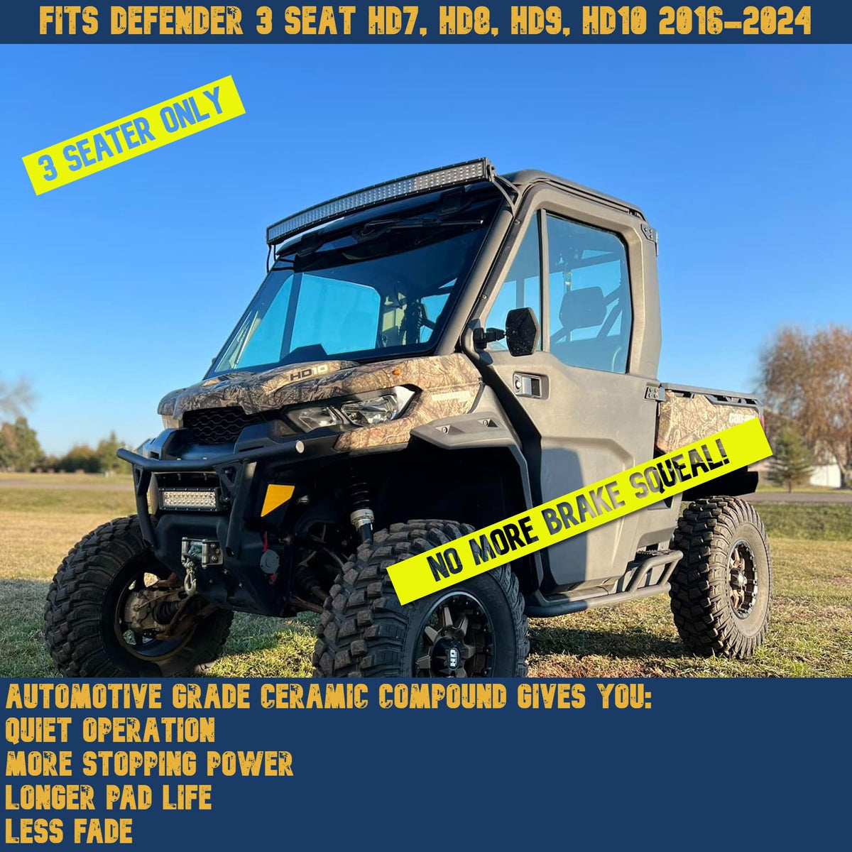 Can-Am Defender (3-Seater) Hd7 Hd8 Hd9 Hd10 Ceramic Brake Pad Set 2016, 2017, 2018, 2019, 2020, 2021, 2022, 2023, 2024