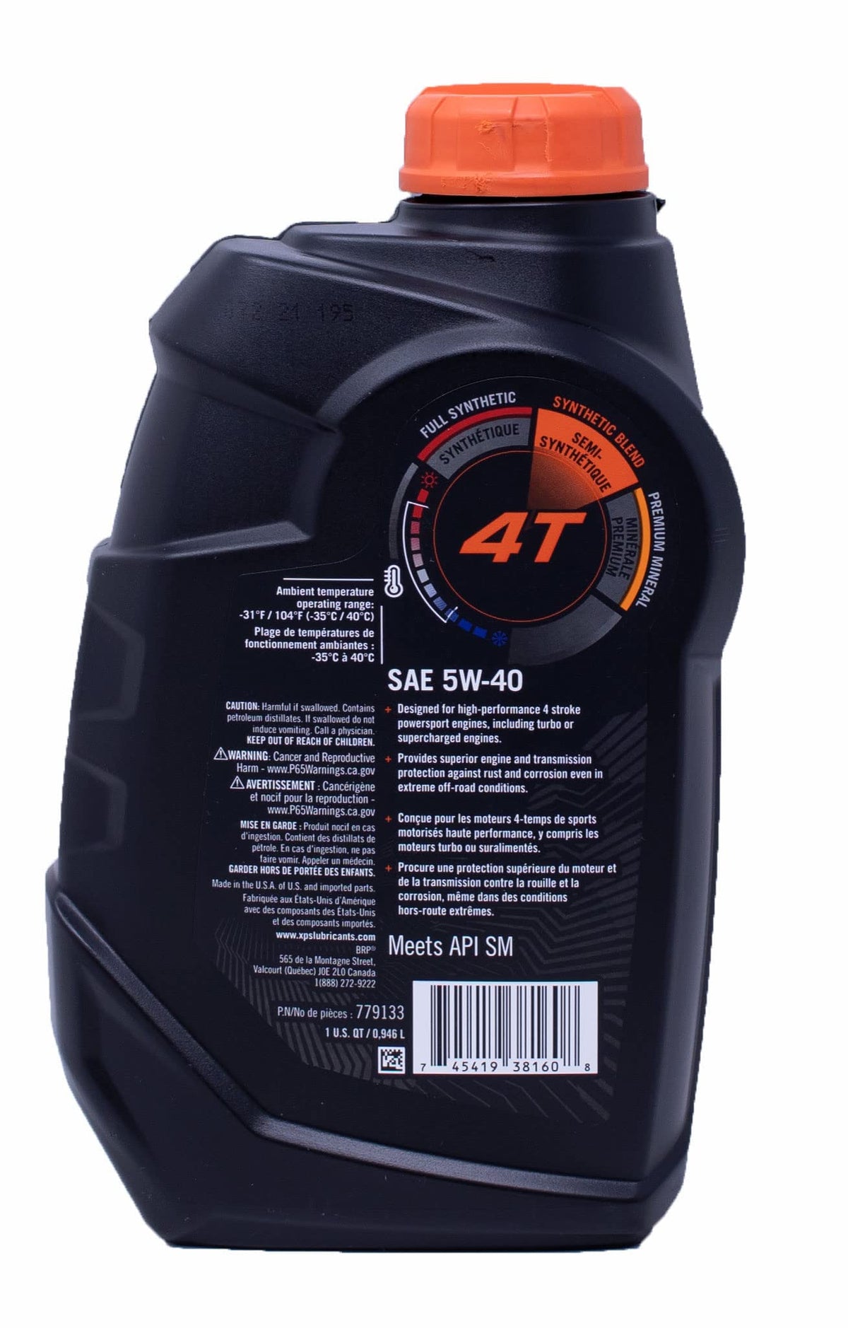 Q: What are the benefits of using XPS 5W-40 oil in my Can-Am ATV?A: XPS 5W-40 oil is designed to provide excellent engine protection, enhance performance, and ensure smooth operation under various conditions, making it ideal for off-road use in Can-Am ATVs.