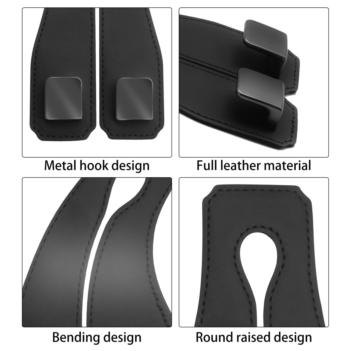 Canipha 2Pcs Car Seat Back Storage Hook, Full Leather Car Headrest Purse Hooks Hang Cups, Umbrellas, Key Chains, Bendable Headre