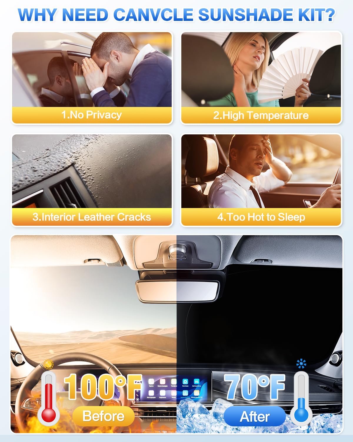 Q: Does this sunshade set provide privacy during use?A: Yes, the Canvcle sunshade set offers great privacy protection. It provides complete blackout capabilities and blocks glare, making it ideal for resting in your vehicle during breaks or camping.
