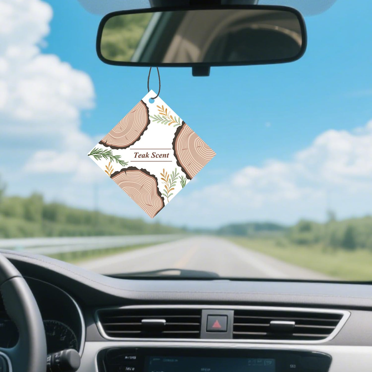 Car Air Freshener - Wood Air Freshener - Car Odor Eliminator - visor clip Scent Starter Kit (5 Packs Handing, Teak Scent 5)