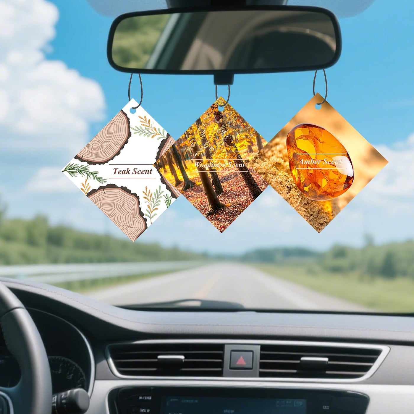 Car Air Freshener - Wood Air Freshener - Car Odor Eliminator - visor clip Scent Starter Kit (5 Packs Handing, Woodiness Scent 5)