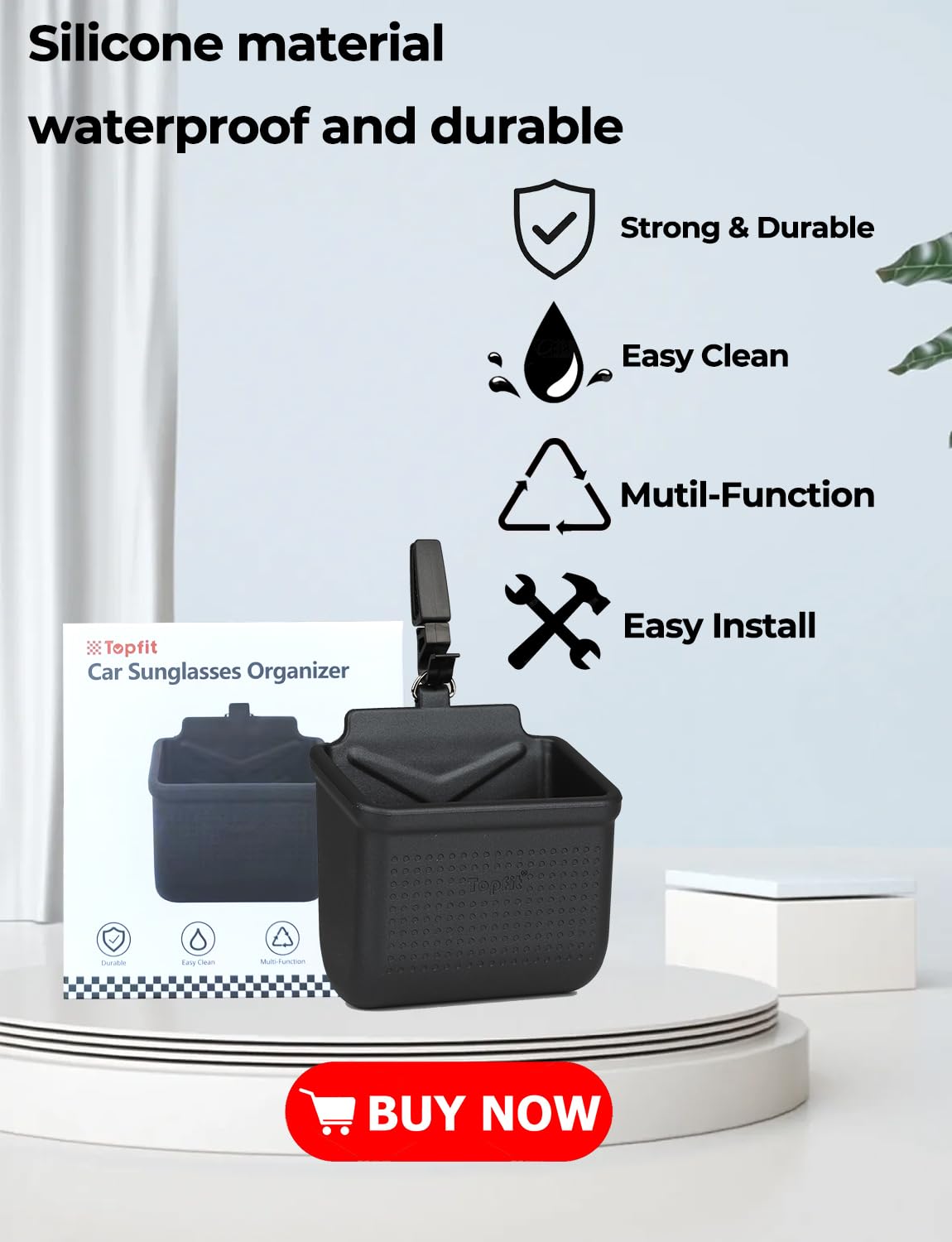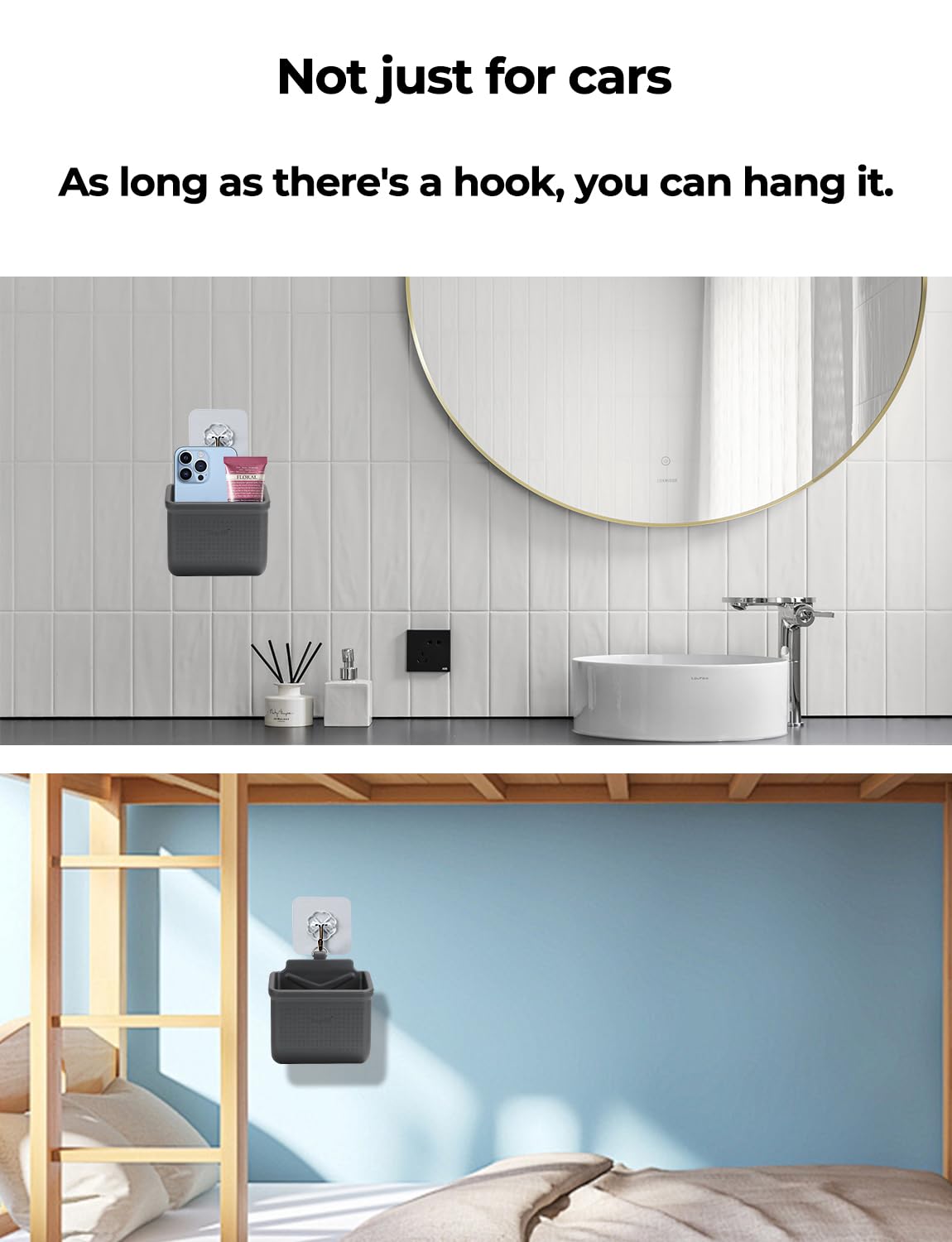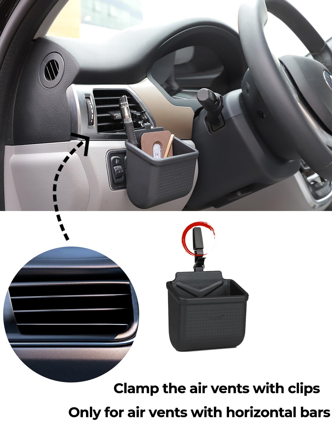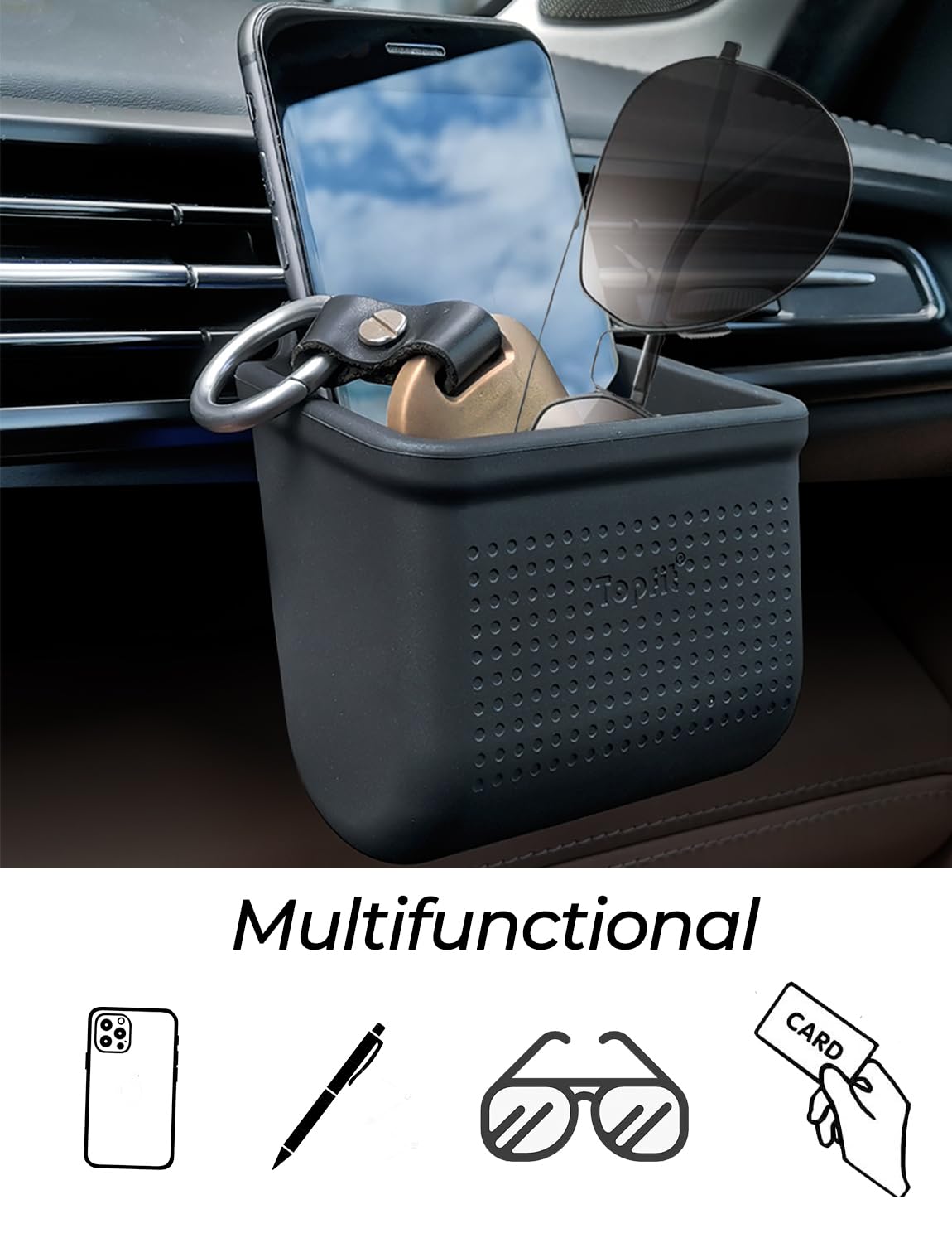 Large Capacity - Space-saving car cell phone storage. Car Sunglasses Organizer Car Mount Phone Holder can hold cell phones, glasses, pens, cards, cigarettes case and other items, keeps your car tidy. | Applied for approved high quality safe silicone material odorless with fine workmanship, wear resistant, cold-resistant and anti-aging. | Simple Design- Stylish and Convenient. The auto air vent car storage bag will keep your car tidy and clean and make you easy to find your small things ever. Available in Black,Grey. | Small Size: Accommodates cell and smartphones up to 3' wide and 6.5' high (Not affecting air vent). | Simple installation: Just hang on the car air outlet, save space and keeps car accessories and small things. The fixed hook is suitable for most of the car vent structure, and it will not fall off easily after this car organizer is installed.