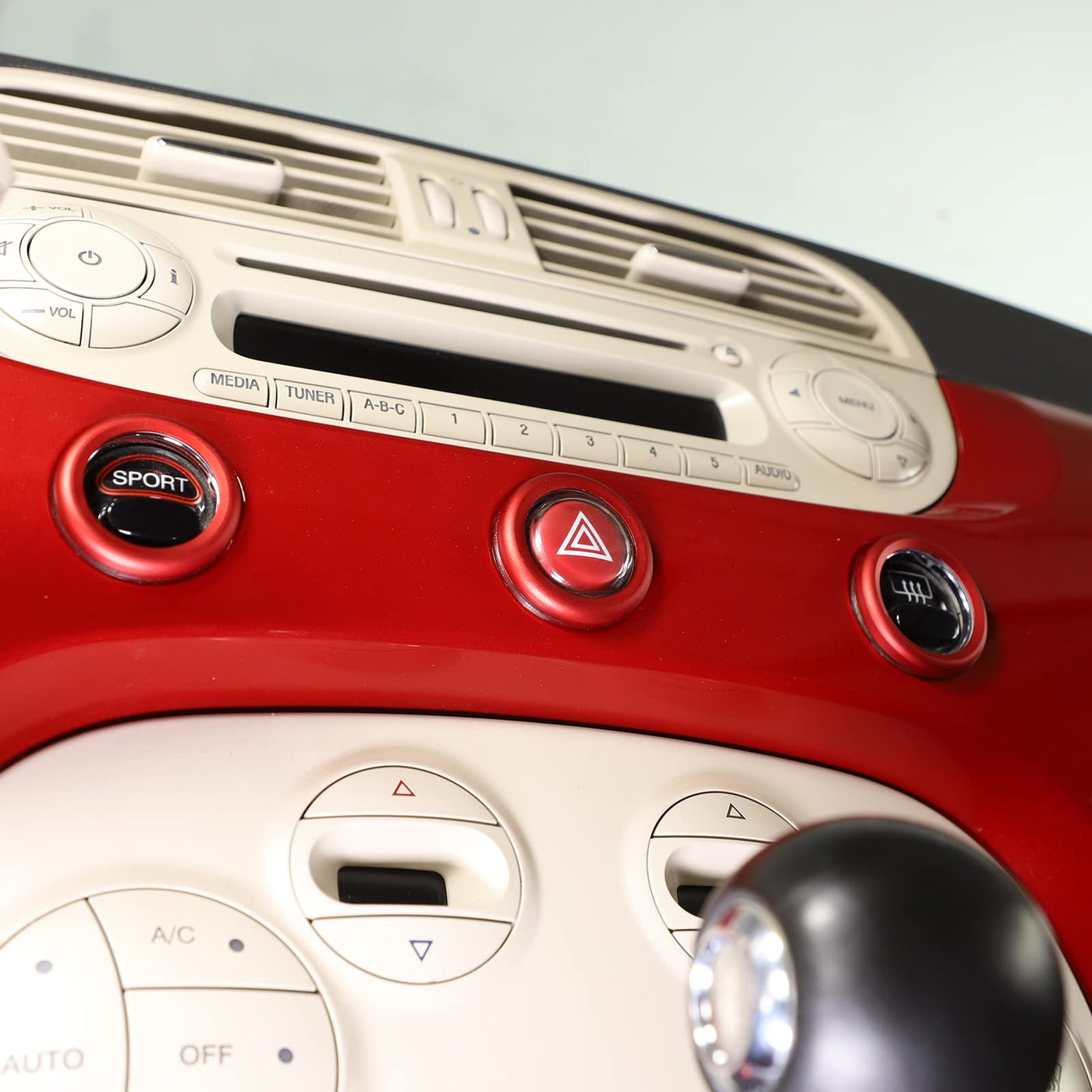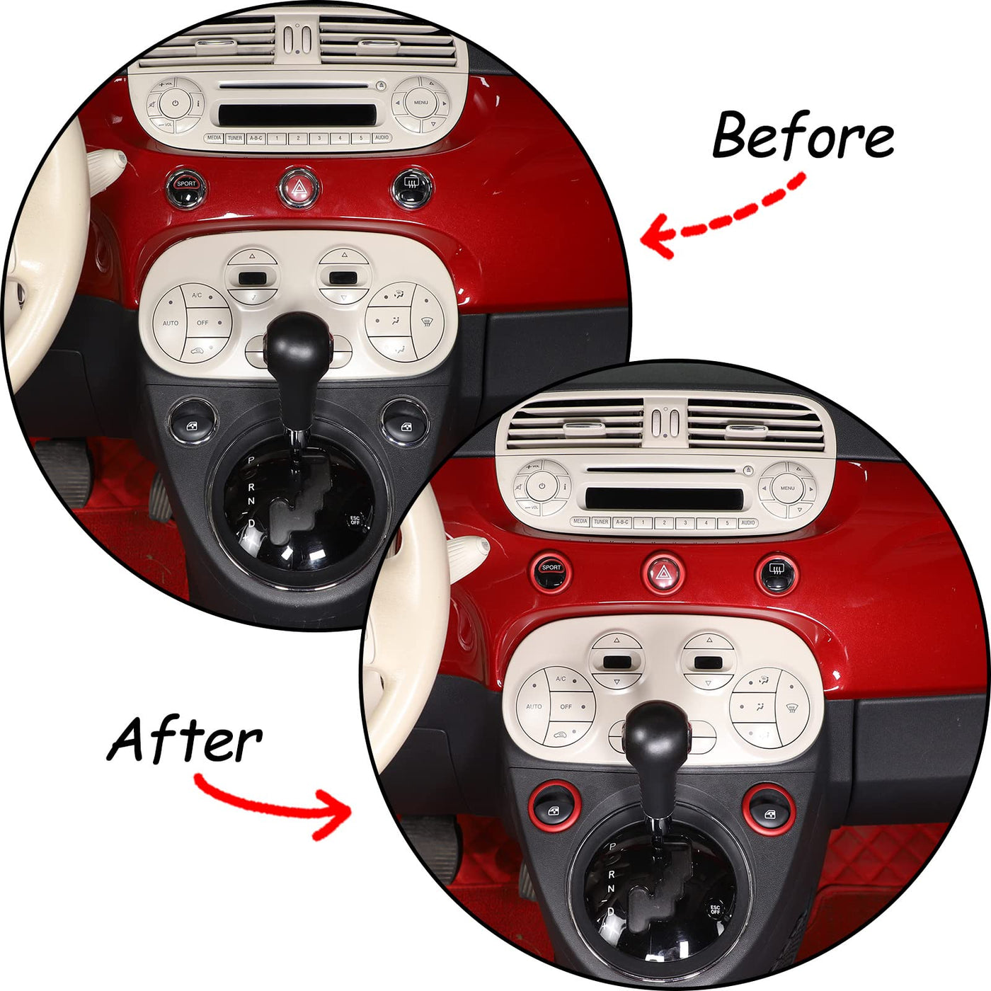 Car Aluminum Alloy Central Control Double Flashing Window Switch Lift Decorative Circle Fit For Fiat 500 Abarth 595 695 2010-2024 (Red)