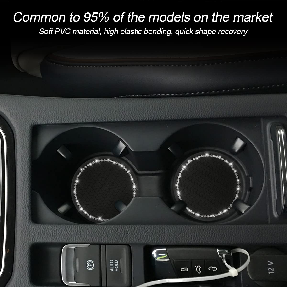 Q: What size are the Car Bling Cup Holder Coasters, and will they fit my car?A: The Car Bling Cup Holder Coaster measures 2.75 inches in diameter, making it suitable for most standard car cup holders. If you are unsure about the fit, we recommend measuring your cup holder before purchasing.