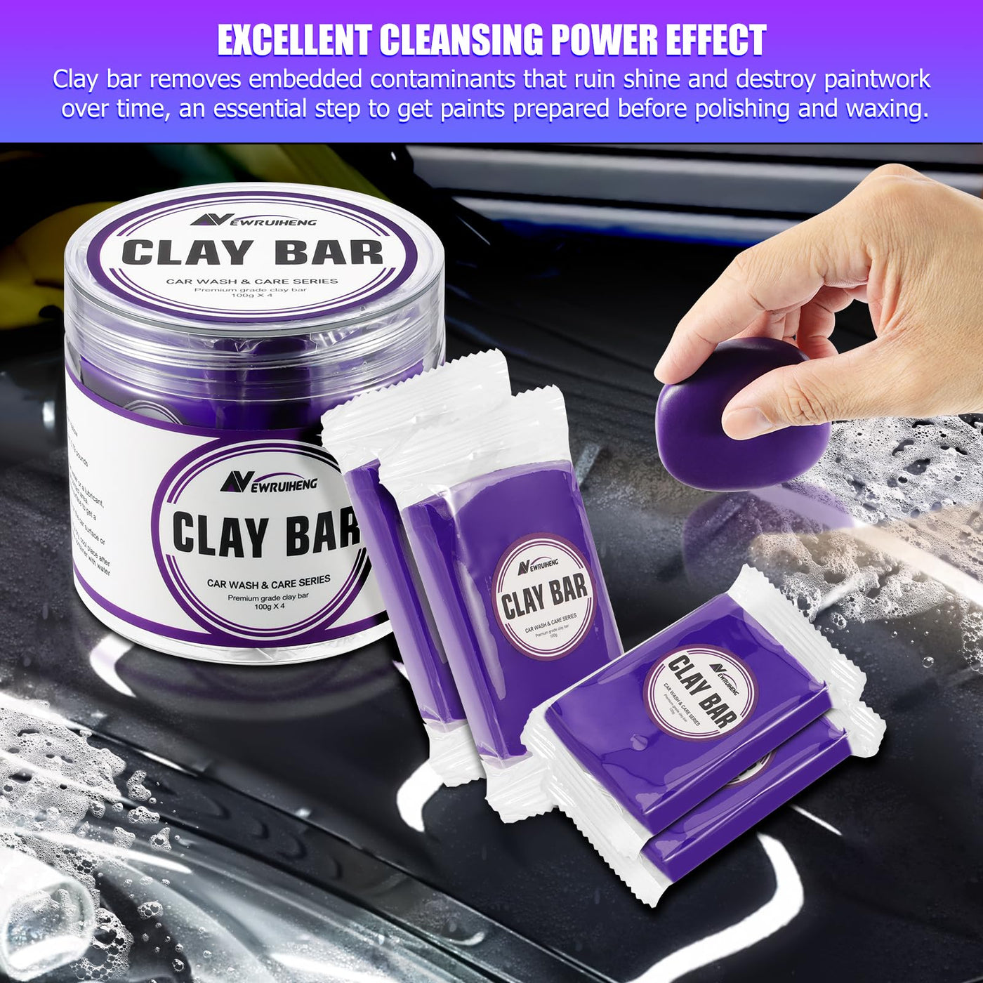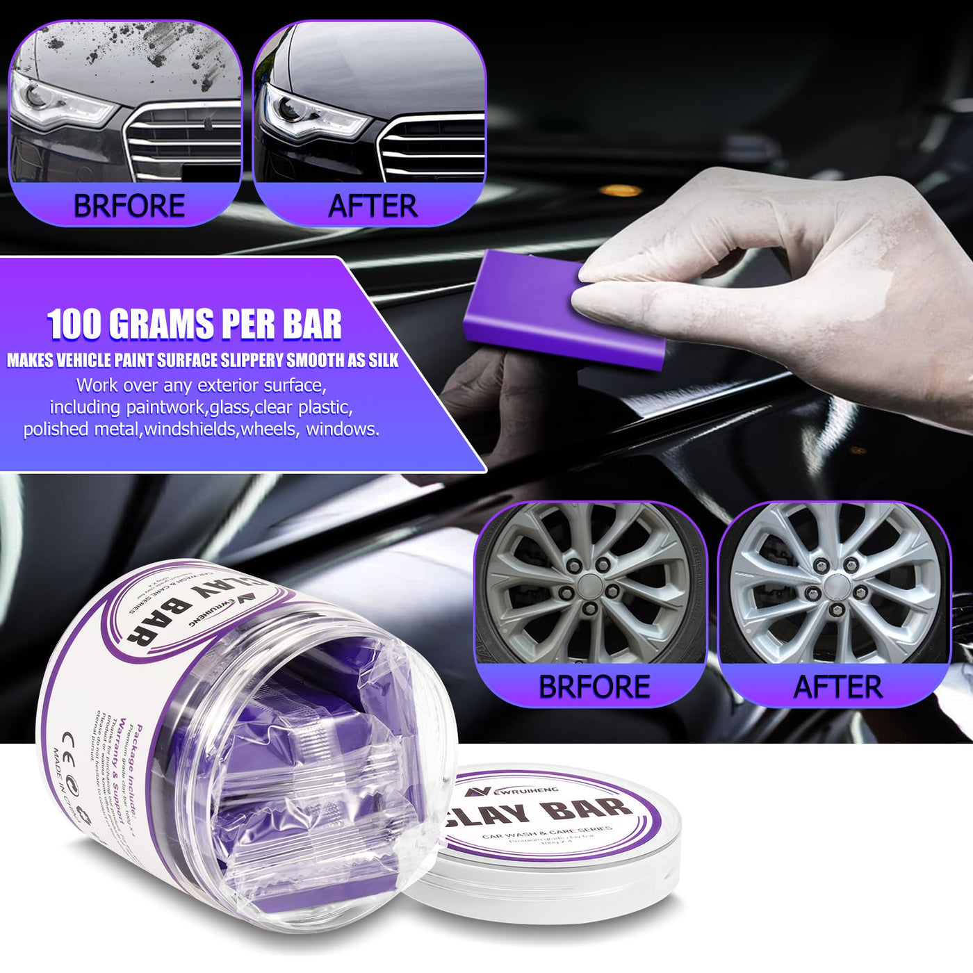 Professional Clay Bar Kit Car Detailing Magic Clay Bars Professional Car Clay Bar - Clay Bar Cleaner Is Made Of Premium Grade Ultra-Fine Fiber And Unique Clay Material Form Through Repeated Refining With Sticky And Decontamination, Does Not Damage The Paint On The Body Surface Perfect For Glass Polished Metal, Painted Surfaces - Contamination Builds Up Over Time And When It Does, If Left Untreated, It Will Ruin Your Vehicleas Paintwork Over Time Use The Clay Bar To Remove Fallout, Brake Dust, Hard Water Spots, Or Tree Sap Do You Need To Clay Bar & When Need Clay Bar To Your Car 1 There Is No Doubt That The Answer Is Yes Car Clay Bars With Strong Practicality Effectively Cleans And Absorbs Dirt Deep In The Lacquer Surface, The Rough Feeling On Your Caras Exterior Is Pollution, Industrial Fallout, And Environmental Contamination Stuck In The Pores Of The Paintwork, And Foreign Particles Block Wax From Sticking To The Paint, Making It Last For A Shorter Time And Not Shine As Bright Cleaning The Surface With A Clay Bar Before Putting On A New Coat Of Wax, Or Polishing Any Exterior Paintwork 2 When Your Paint Doesnt Feel As Smooth As Glass, Its Time To Use A Clay Bar Any Rough Feeling Is Pollution And Dirt Adhering To The Paint, And Only The Clay Bar Can Remove It Safely How To Use: 1 Please Clean The Dust On The Surface To Get A Better Clean Effect 2 Fully Wet Car Clay With Clean Water Or A Lubricant, Rub And Stretch To Increase Contact Area 3 Wipe Away Stubborn Stains On The Car Surface Or Glass With Car Clay 4 Put It In A Bag And Store It In A Dry, Cool Place After Use, You Also Can Put It In The Container With Water To Keep It Soft And Flexible Specifications: Product Name: Car Clay Bar Color: Yellow Stretch Length: 59In-79In Weight (Clay Bar& Container): 079 Pounds Package Include: Premium Grade Clay Bar 100G X 4