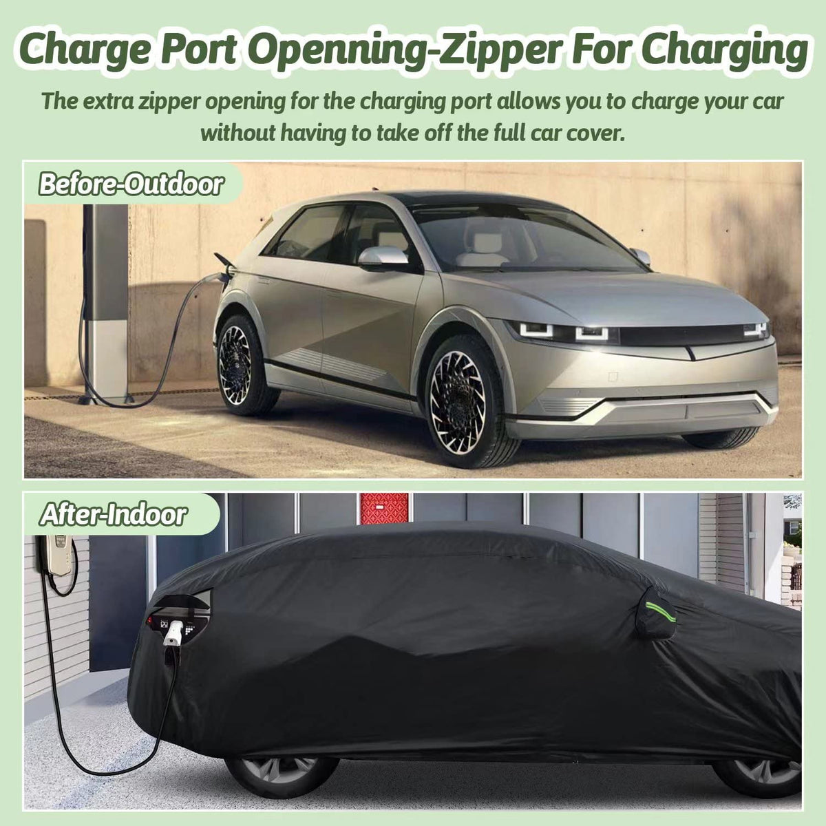 Car Cover for 2022-2025 Hyundai Ioniq 5, Waterproof All Weather Rain Sun UV Protection Heavy Duty Full Car Cover with Charge Por