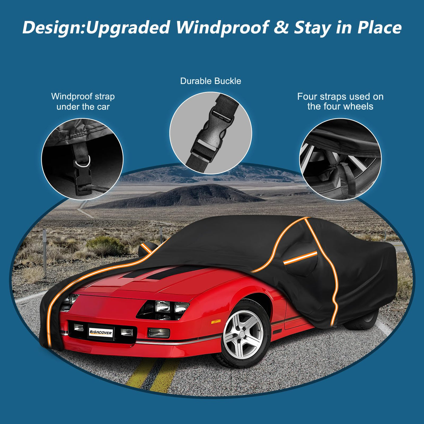 Car Cover For Chevy Camaro 1982-2002, Waterproof 210D Oxford Cloth And Cotton Cover Outdoor Full Car Covers With Zipper Windproo