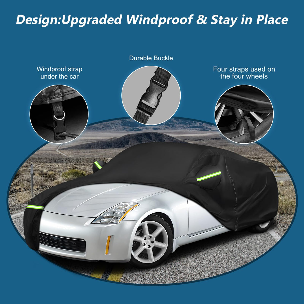 Car Cover Waterproof for 2003-2009 Nissan 350Z,210D Oxford Cloth with Cotton Outdoor Car Covers with Zipper Windproof Heavy Duty