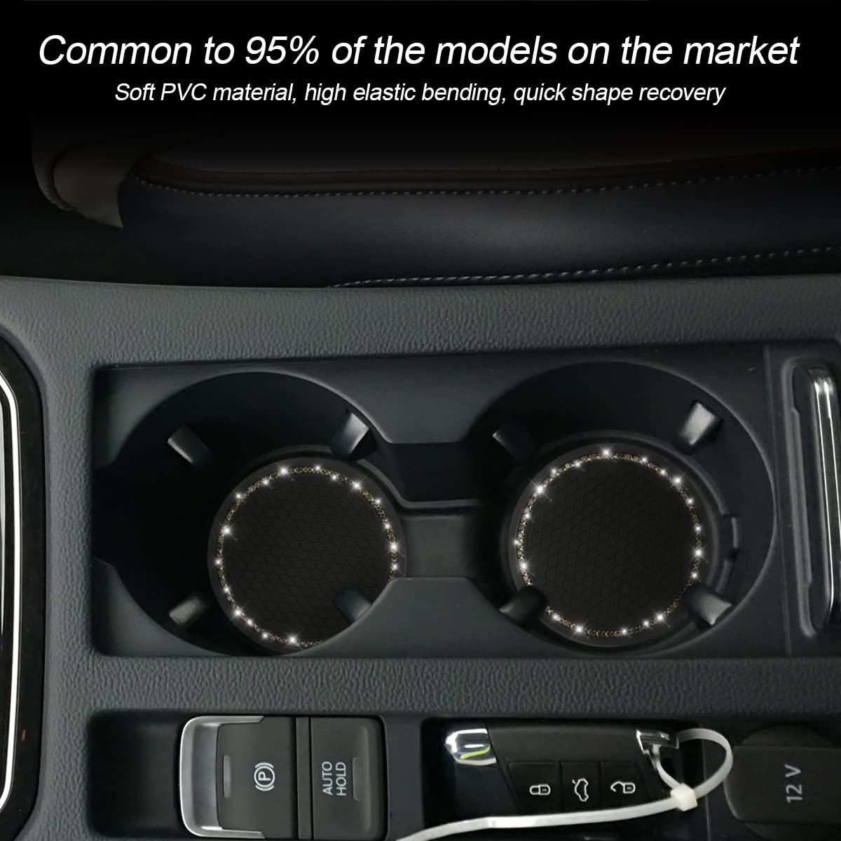 Car Cup Holder Coaster, 2 Pcs Universal Bling Crystal Rhinestone Car Accessories 2.75 Inch Auto Anti Slip Cup Holder Insert Mat Pad Set,Suitable For Most Car Interior (Black/Gray)