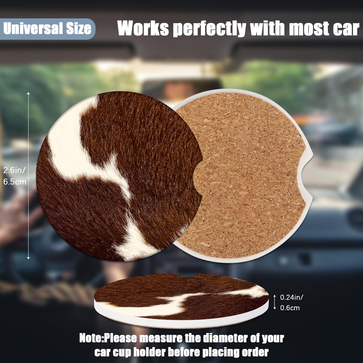 Car Cup Holder Coaster -Cow Hide Brown Absorbent Ceramic Coaster, Car Coasters for Cup Holders, Auto Accessories for Women & Men