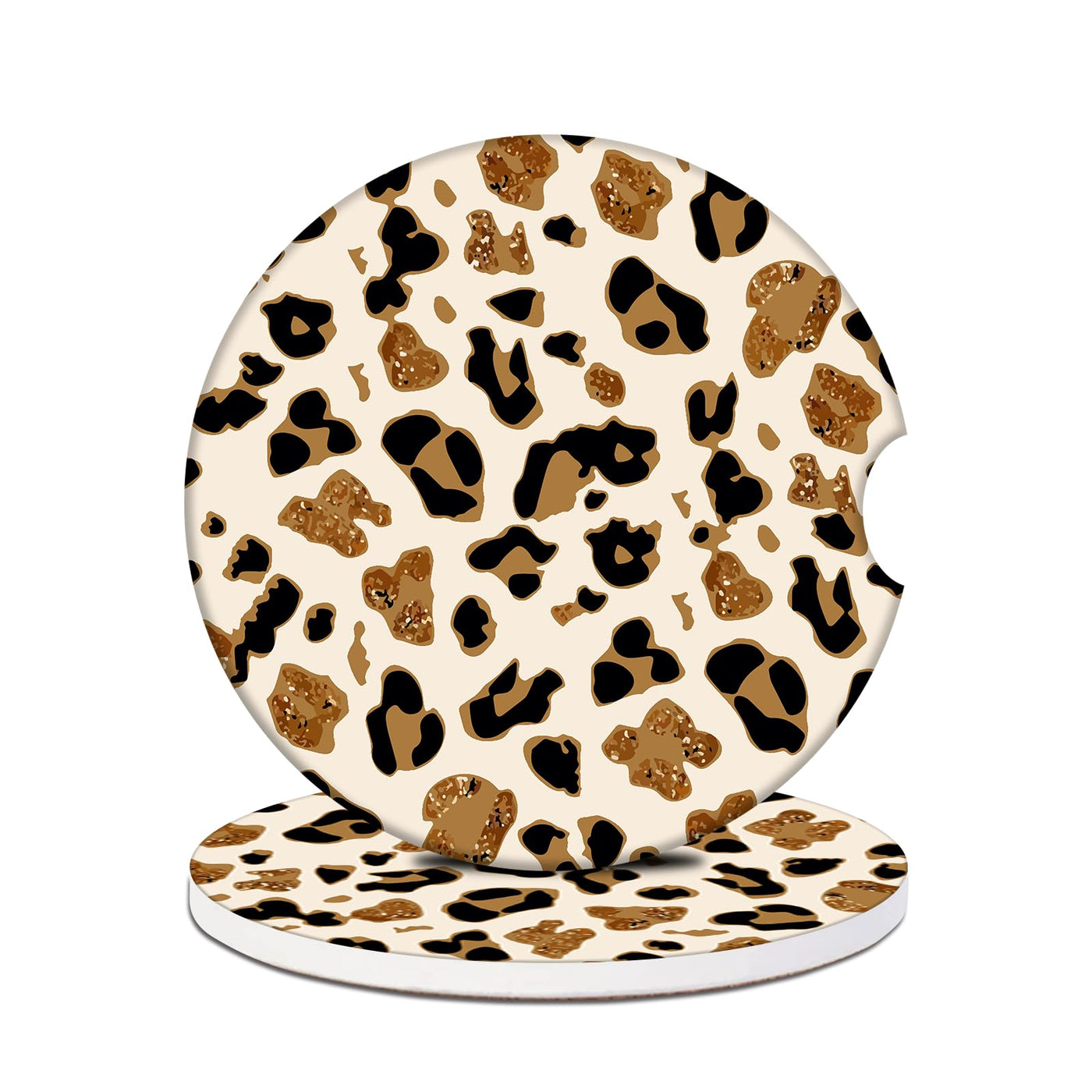 Car Cup Holder Coaster - Leopard Print Absorbent Ceramic Coaster, Car Coasters for Cup Holders, Auto Accessories for Women & Men