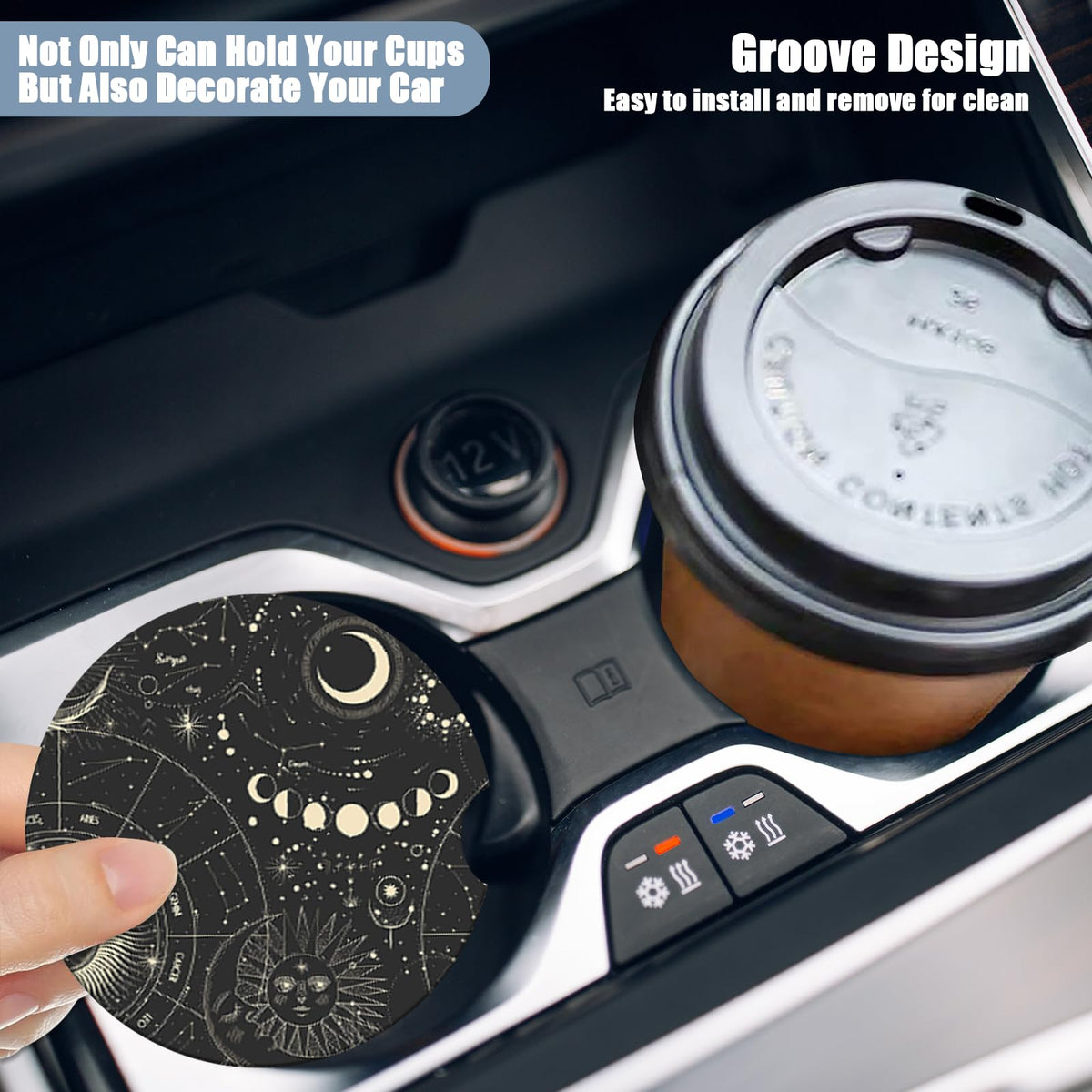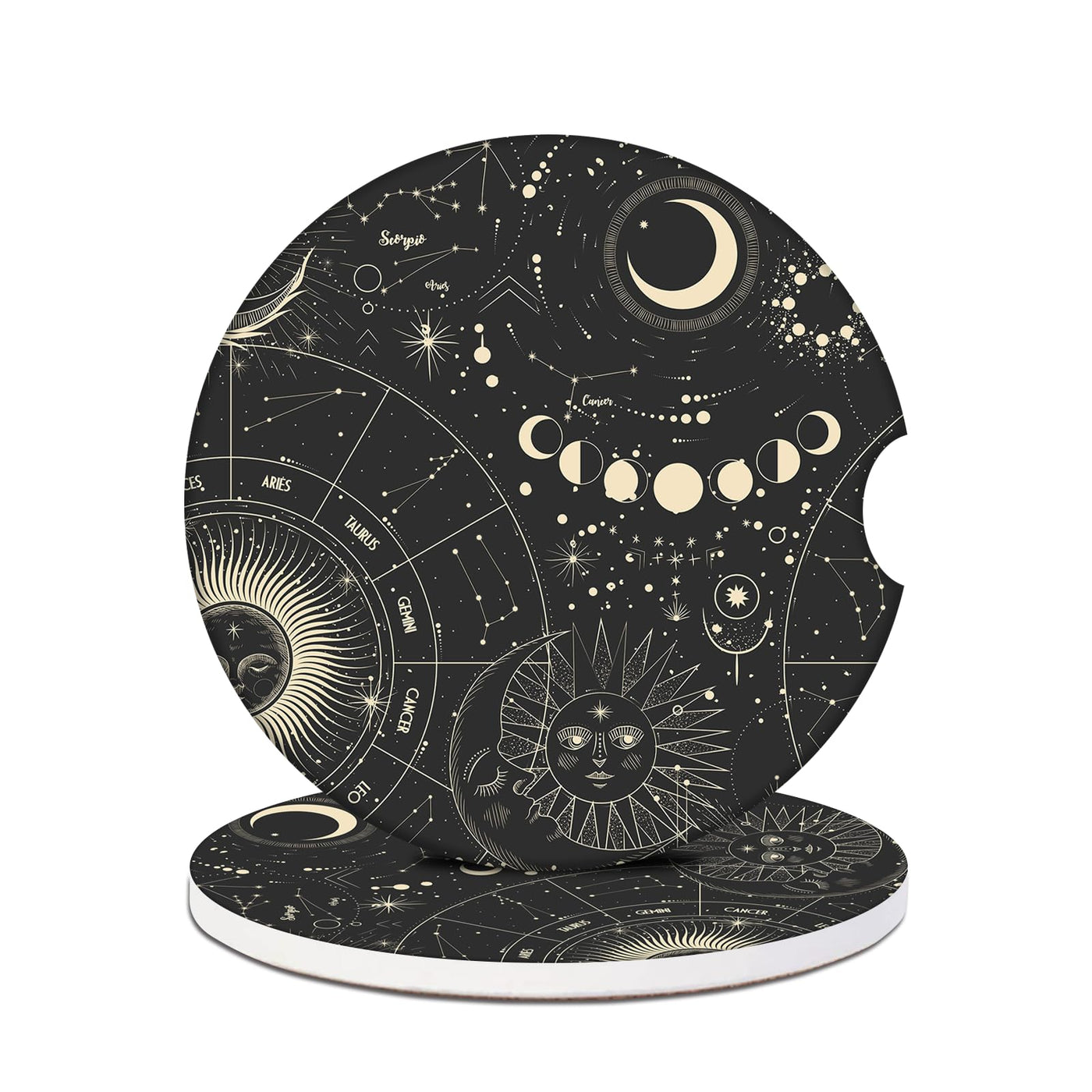 Car Cup Holder Coaster - Sun Moon Absorbent Ceramic Coaster, Car Coasters for Cup Holders, Auto Accessories for Women & Men, Pac
