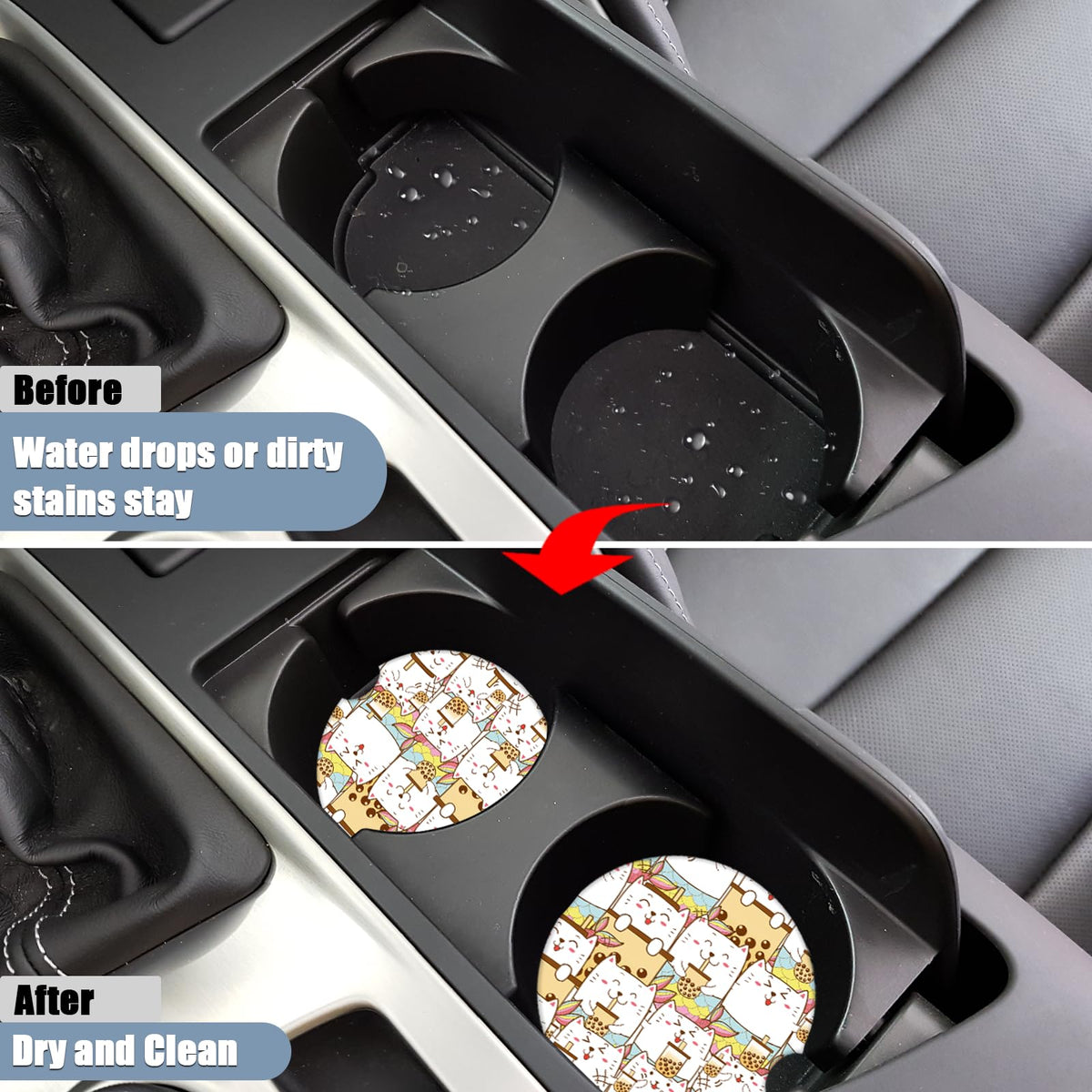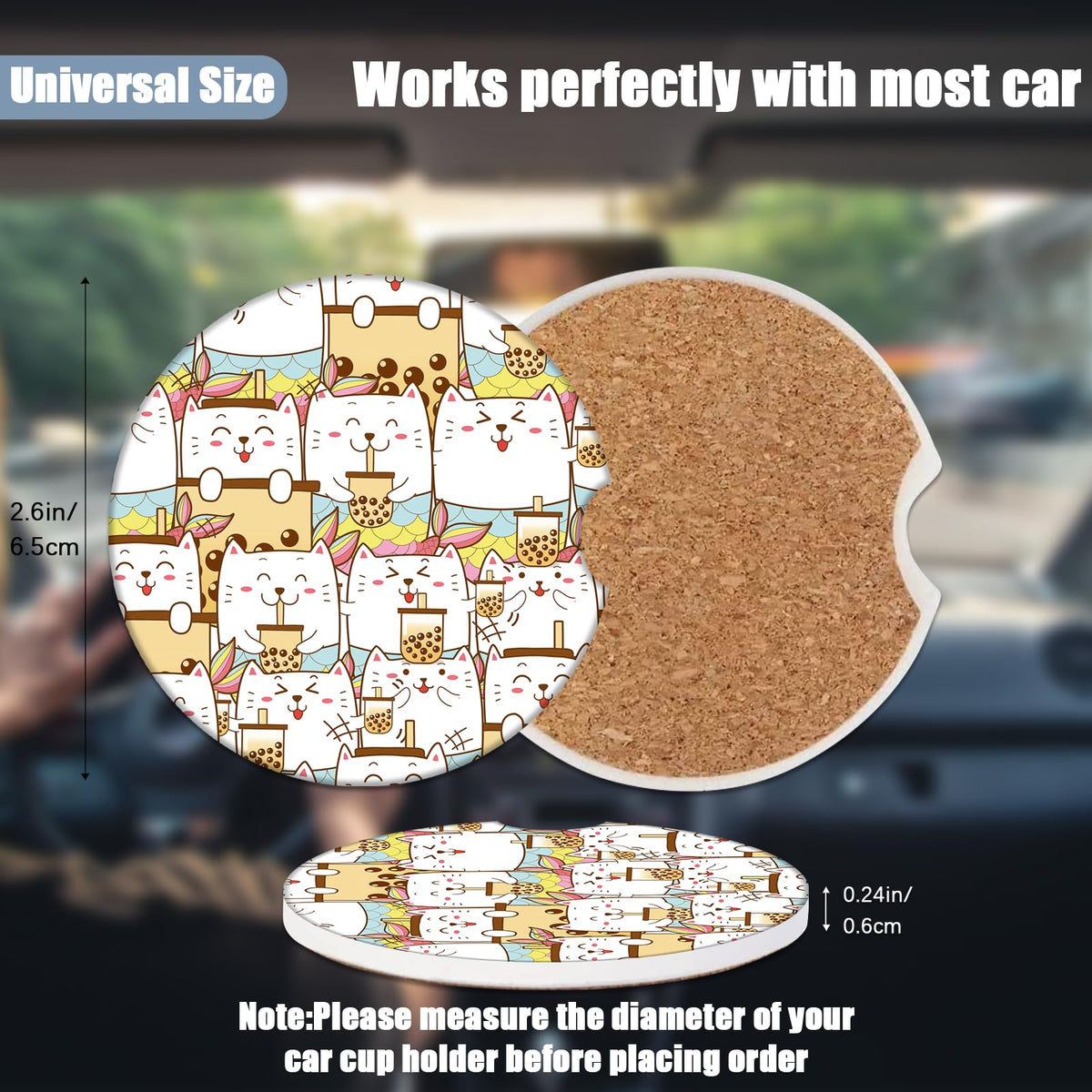 Car Cup Holders Coasters - Cute Cat Absorbent Ceramic Coaster, Cat Lover Drink Cup Holder Coasters, Auto Interior Accessories fo