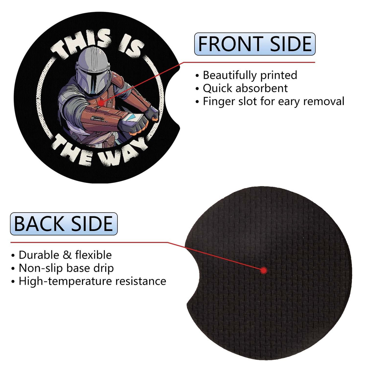 Car Cupholder Coaster Absorbent 2 Pack Funny Fun Cool Cartoon Cute This is The Way Rubber New Automotive Cup Holder Decal Decor