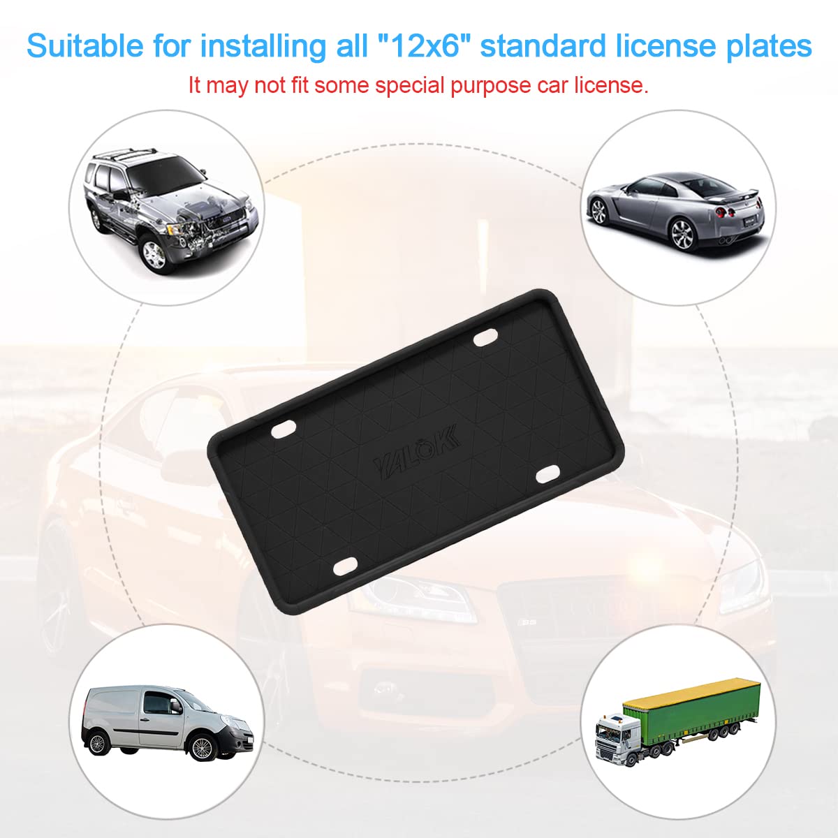 [TOP QUALITY] Our product is made of high-quality silicone material, upgraded texture and quality, enhanced stability, durable and lightweight. Simple and classic color and pattern gives your a classy look, upgrade car level, also decorate your car! | [PERFECT PROTECTION] Our license plate frame can help to prevent license plate from corrosion, rusting, aging and more situations, offer long-term protection. This silicone license plate frame is soft which can be easily installed without hurting and scratching in your car. | [GENERAL USE] Universal for most cars, vehicles, SUVs, vans, sedans in the market, perfectly fit most U.S standard size license plate without covering state name. This license plate frame measures about 6.1*12, please make sure the size is suitable for your car or you can get in touch for further assistance! | [EASY TO INSTALL] All required tools are included in the package, easy and convenient to install and remove in minutes by using screw set that we provided. Please note: Package includes 2 license plate frames for front and rear license plate to use. | [AFTER SALES] If there'e any quality problems about our product or you have any questions, please get in touch with us and let us know in time, our customer service team will reply within 24 hours and provides you with the best solution!