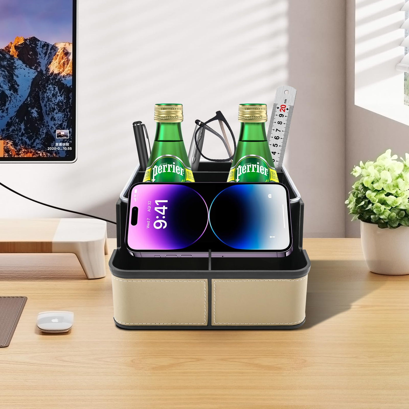This car central console organizer is designed with 6 compartments, including 2 large storage pockets, 2 medium-sized pockets, and 2 small pockets. The pockets are designed with elastic bands to fix the phone or other items, which prevent them from falling or moving during driving. The car console organizer is designed with 2 cup holders, which can hold most cups or cans, such as coca cola, pepsi, water bottles, etc. It's a good helper for your car. This car armrest storage box is perfect for storing daily necessities such as coins, cards, tissues, sunglasses, etc. It can also be used for storing coins, cards, or other sundries to keep the car interior clean and tidy. This multifunctional car storage box is perfect for the driver and the co-pilot.