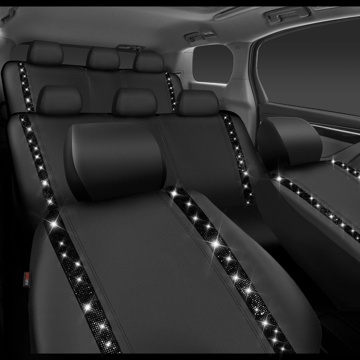 CAR PASS Bling Car Seat Covers, Shining Rhinestones Diamond Waterproof Faux Leather, 8 Seats 3 Rows with Zipper Glitter Crystal