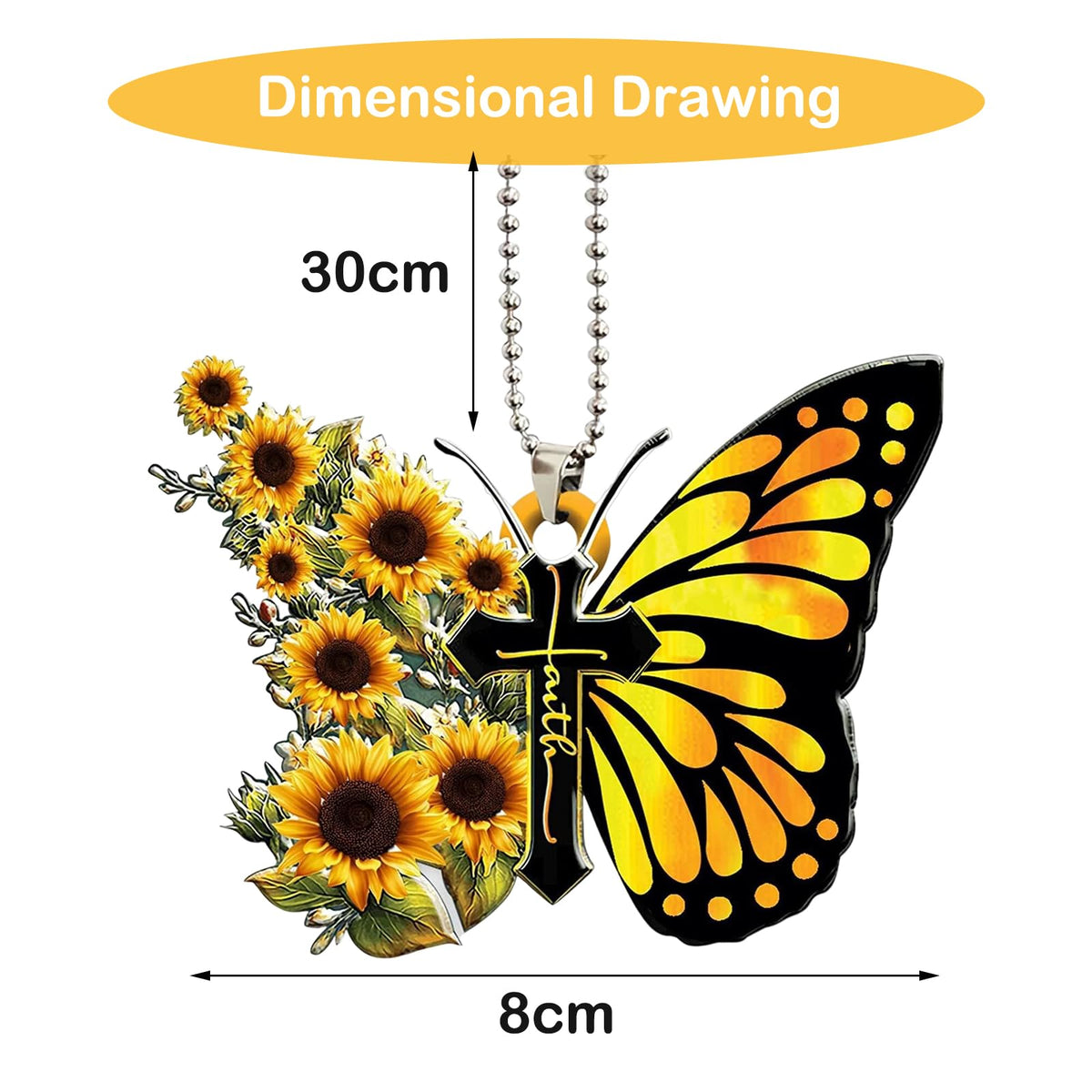 Sunflower Butterfly Jesus Cross Christian 2D Flat Car Rear View Mirror Accessories. The sleek and modern design enhances car customization or serves as a unique Christmas tree decoration.