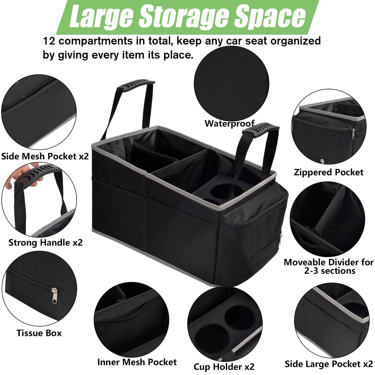 Car Seat Organizer and Storage - Backseat Car Caddy with 12 Storages Compartments & 2 Cup Holders & Tissue Box, Car Storage, Car