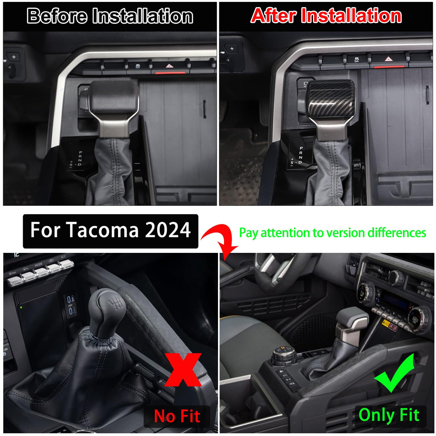 Q: Is the Car Shifter Gear Hand Brake Trim Cover compatible with my Toyota model?A: Yes, the Car Shifter Gear Hand Brake Trim Cover is specifically designed to be compatible with Toyota Tundra and Sequoia models from 2022 to 2025, as well as Tacoma models from 2024 onwards. Please confirm your vehicle model before purchasing to ensure a proper fit.