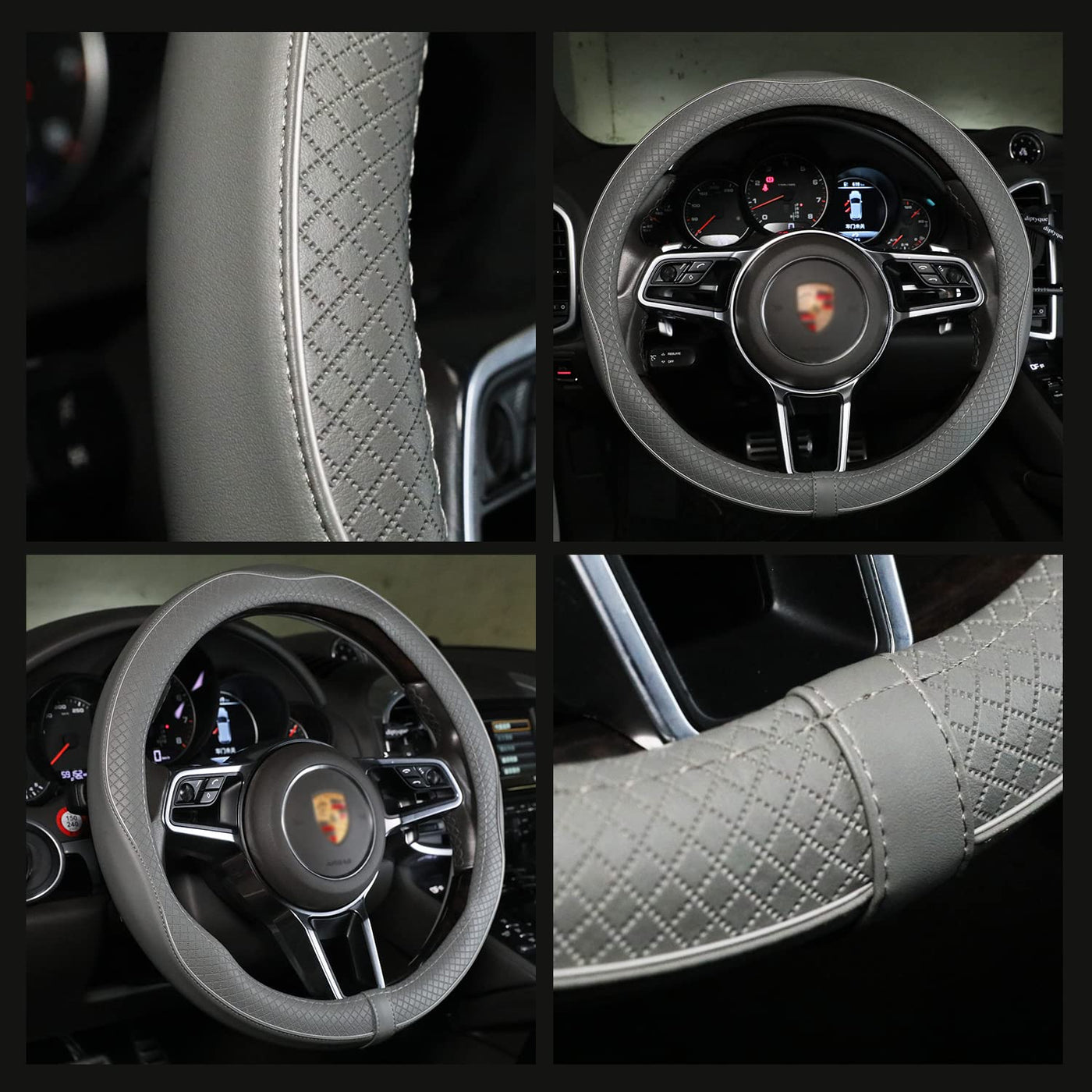 Car Steering Wheel Cover, Anti-Slip, Safety, Soft, Breathable, Heavy Duty, Thick, Full Surround, Sports Style (Gray)