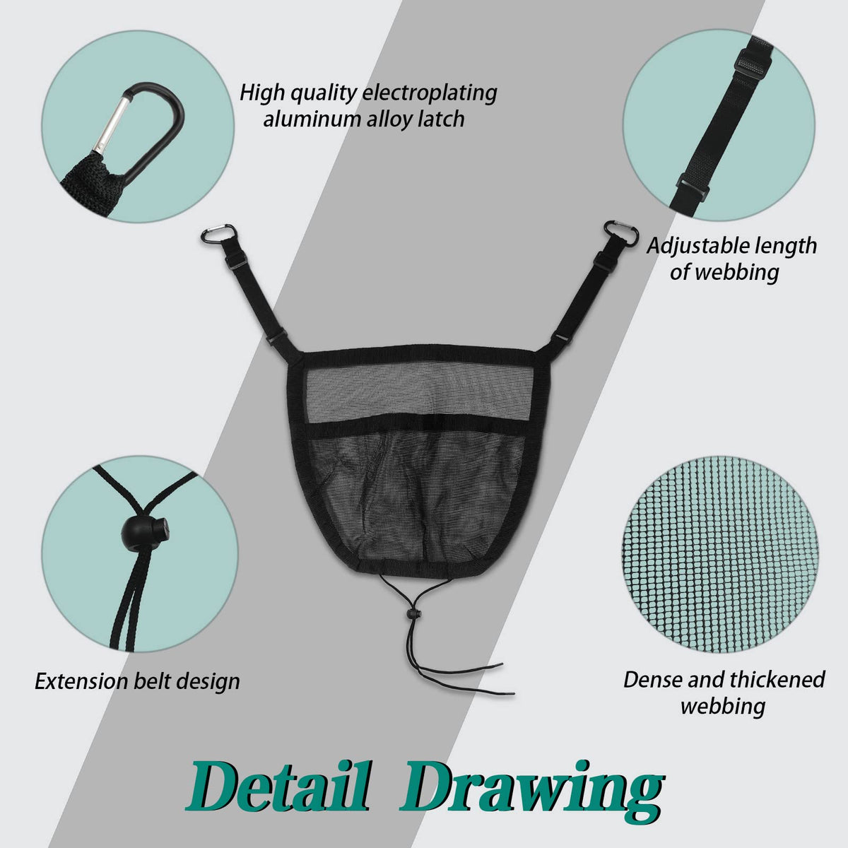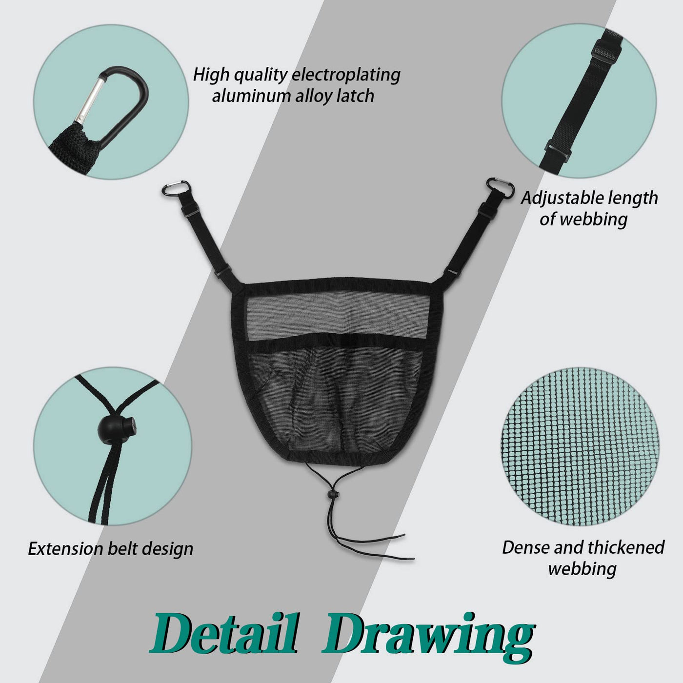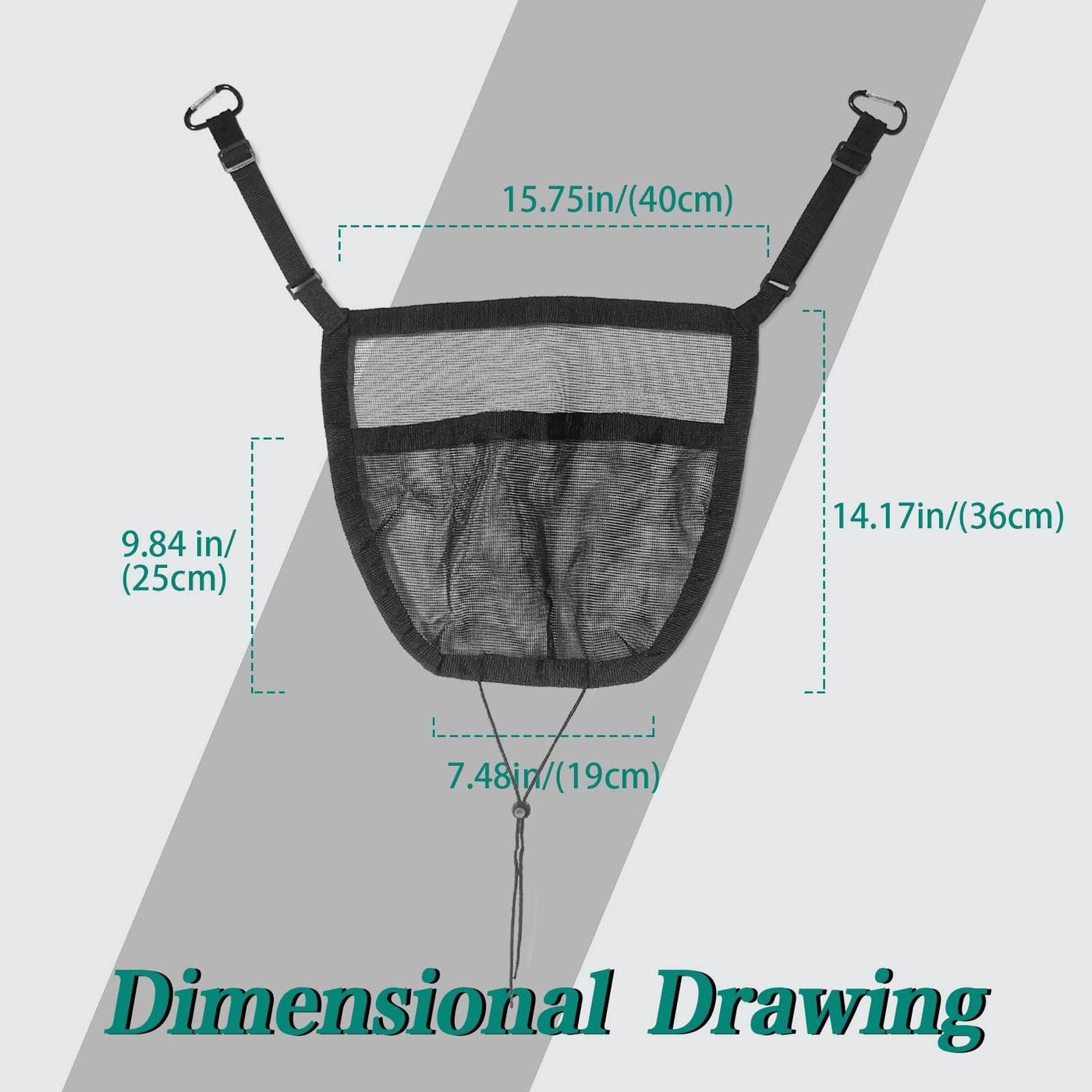 Material: PVC Coated Mesh Net; High Strength Polyester BlendThe car net organizer comes with an extra pocket where you can store things like chargers, umbrellas, notebooks, snacks, toys, and whatever else you and your passengers need on the road.