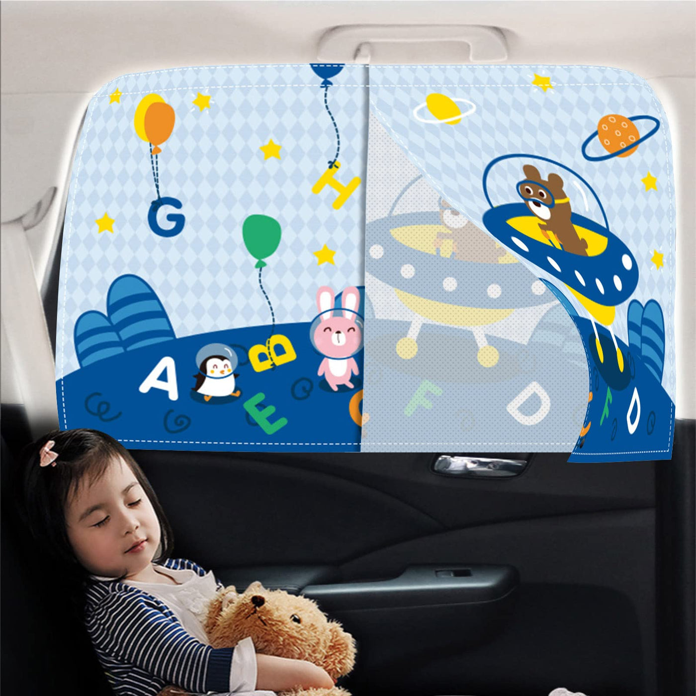 Car Sun Shade For Baby - Eohmak Car Side Window Sun Shade Cover Upgrade Double Opening Car Interior Curtain Sun Blocker Blind (Alphabet Planet, 2 Pack)