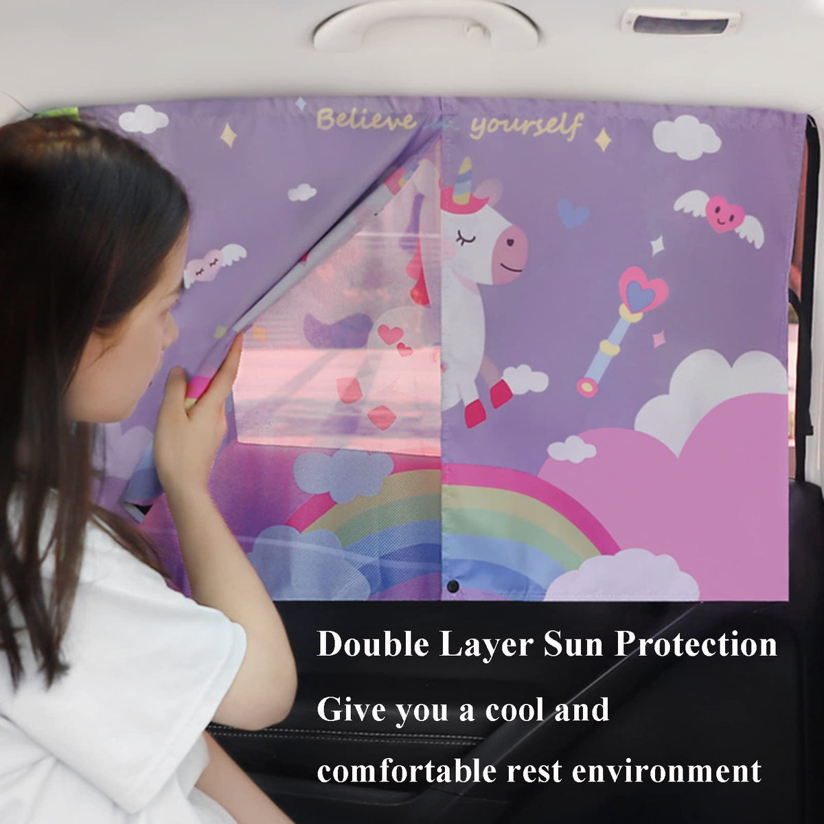 Features: --- Make Sure to Check Your Car Side Windows or Door before Purchasing. It works for Metal Framed Window and Metal Framed Door which Magnet can attach. Metal framed covered with rubber or plastic, the power of magnets decreased so it can not attach to window frame or car frame. --- Don't know your car door or window frame is compatible? You may test with refrigerator magnet! --- Want to enjoy outside view? You can simply tie the sunshade curtains with the built in strap when it does not need. Also, you can roll down the side window without taking off the curtain to get some fresh air. Keep it in your car as your favorite car accessories or travel accessories. Specifications: 1. Suitable for vehicles of all models. 2. Blocking the strong ultraviolet radiation of the summer sun, but does not hinder your view, does not affect your view of the beautiful scenery outside the car. 3. Anytime, anywhere, you can install and collect as you wish. 4. Effectively block heat, maintain the balance of air conditioning inside the car, reduce the fuel consumption caused by air conditioning. 5. Only take 3 seconds to install, disassemble, no tools, super strong flexibility. Type: Cartoon magnetic sun shade Material: Pongee + polyester taffeta Size: About 68*50cm