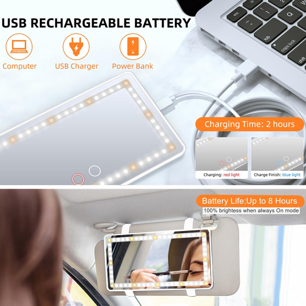 Do You Encounter Such Troubles In The Car? Forgot To Bring Your Vanity Mirror The Car Is Too Dark - Not Enough Light Car Rearview Mirror - Too High And Too Far For This I Recommend This For You - Vanexiss Car Makeup Mirror With Light Why Choose Vanexiss Car Sun Visor Mirror? -- Ordinary Mirror: Insufficient Brightness, Heavy Makeup -- Vanexiss Fill Light Mirror: Bright And Clear Specification: ?Material: Abs + Glass ?Color Temperature: 3000K-6500K ?Usb Cable Length: 3M (118Inches) ?Power Supply: Type-C ?Battery Capacity: 1700Mah ?Charge Time:2 Hours ?Last Time: 6 Hours (100% Brightness When Always On Mode) Warn Tips: Do Not Use Mirror While Driving, Keep Your Eyes On The Road. Do Not Keep Inside Your Car In High Temperature In A Long Time. Packing List: ?1 X Car Makeup Visor Mirror With Light ?1 X Usb Charging Cable ?1 X User Manual ?2 X Straps