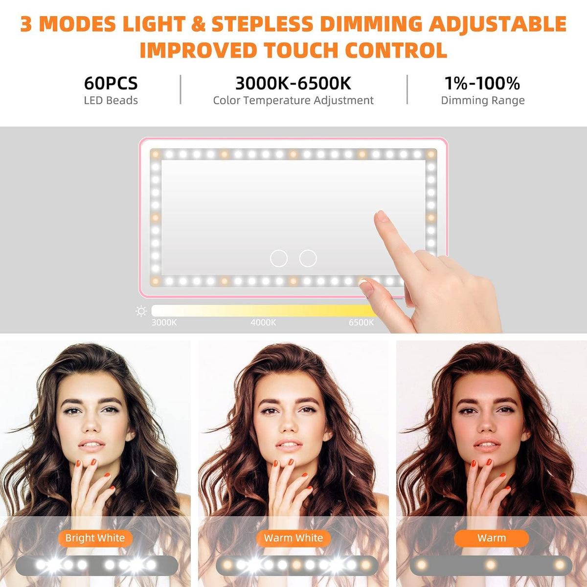 Q: What are the light modes available for the Car Sun Visor Vanity Mirror?A: The Car Sun Visor Vanity Mirror features three color lighting modes: cool white, warm yellow, and a dimming function that allows you to adjust the brightness according to your needs.
