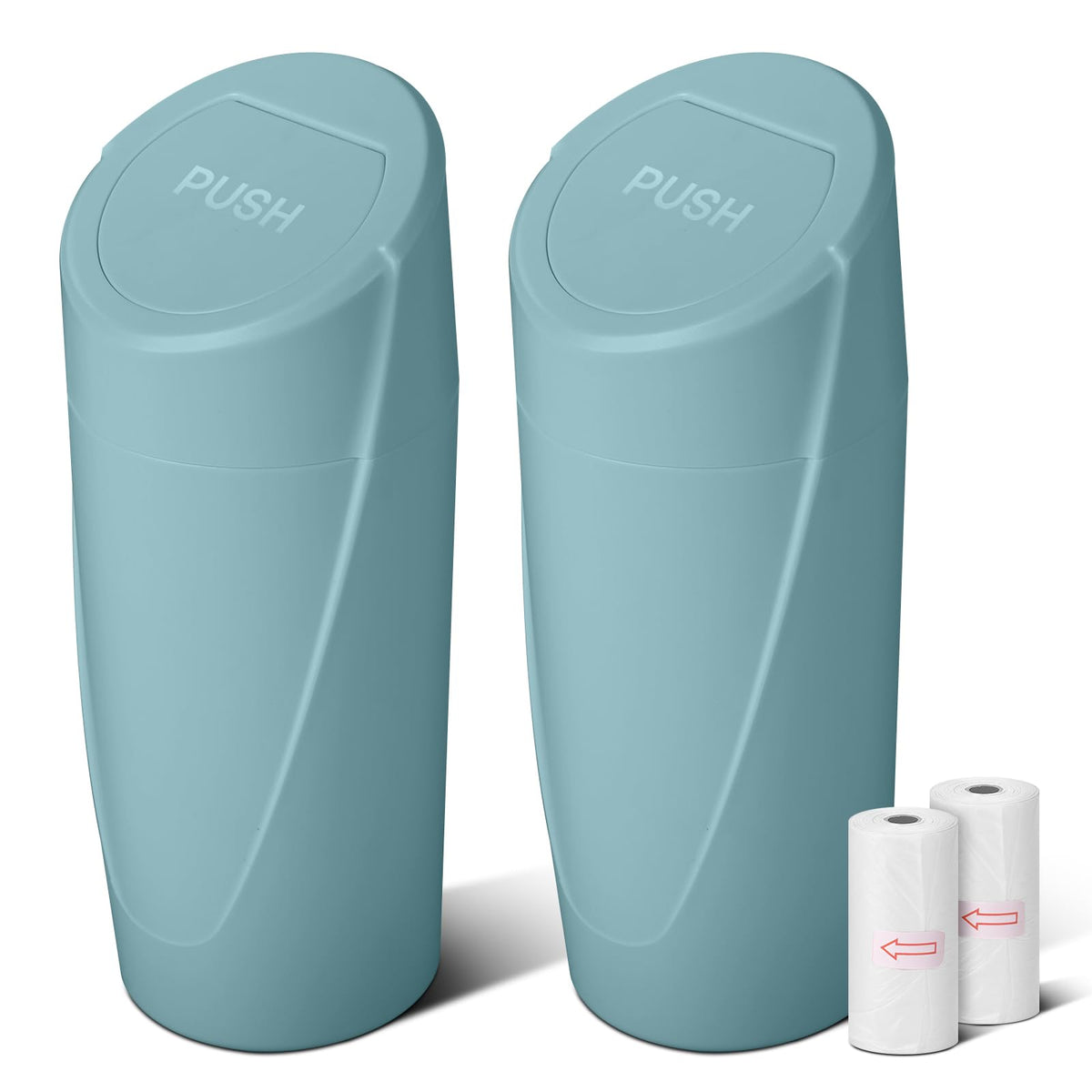 Car Trash Can Bin With Lid-2 Packs Car Garbage Can Cup Holder-Dark Green Mini Leakproof Vehicle Trash Garbage Can Bin With 40Pcs