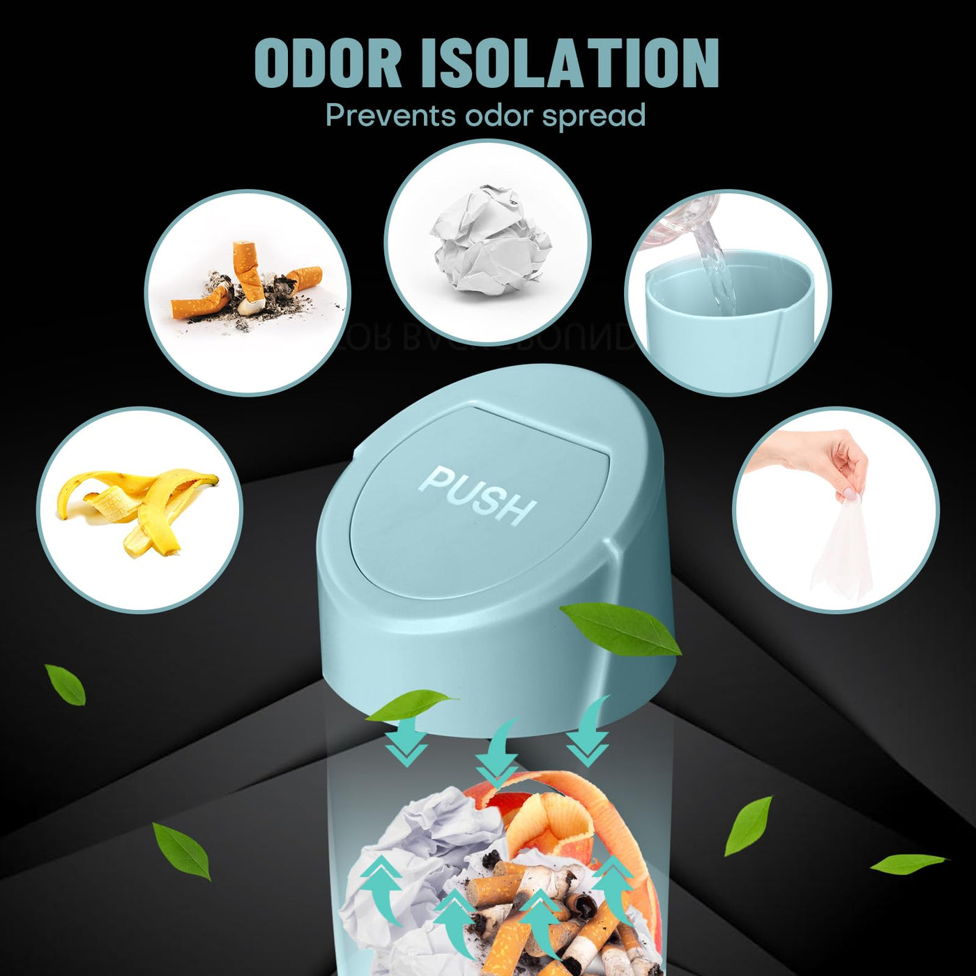 Q: How does the flip lid design of the Car Trash Can work?A: The flip lid design allows for easy access to dispose of trash with a simple push. It automatically closes to block odors, keeping your car interior fresh and clean.