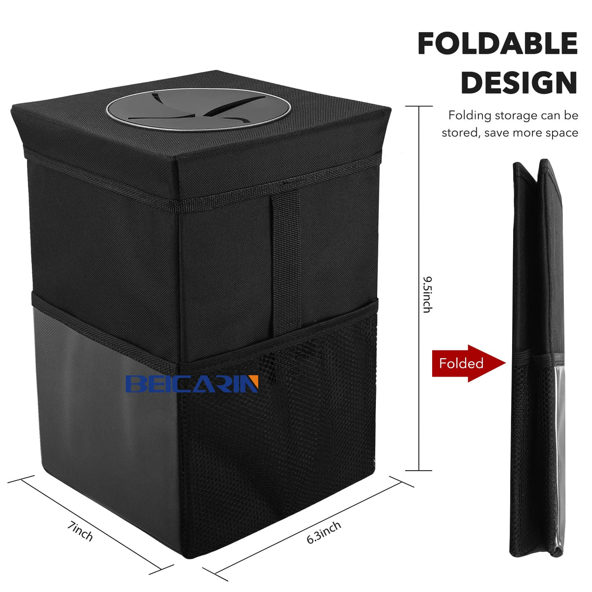 With Beicarin Car Garbage Can, You Can Throw All Kinds Of Trash Into It, Such As Tissues, Wrappers, Napkin, Bottles And Even Unfinished Drinks, While It Gives You A Clean And Tidy Car Perfect Size: With Large Storage Capacity, You Can Throw All Kinds Of Trash Into It Multi-Purpose: Our Product Is Not Only A Trash Can But Can Also Be Used As A Car Storage Bag, And A Cooler Bag Since The Thermal Insulated Waterproof Liner Holds Ice To Keep Drinks And Food Cold For Hours In The Car Product Features: -High-Quality And Durable Oxford Polyester Material -Suitable Size -Smart Multipurpose Design -100% Waterproof -Easy To Install And Collapse -Superior Durability -Easy To Clean -Satisfaction Guarantee